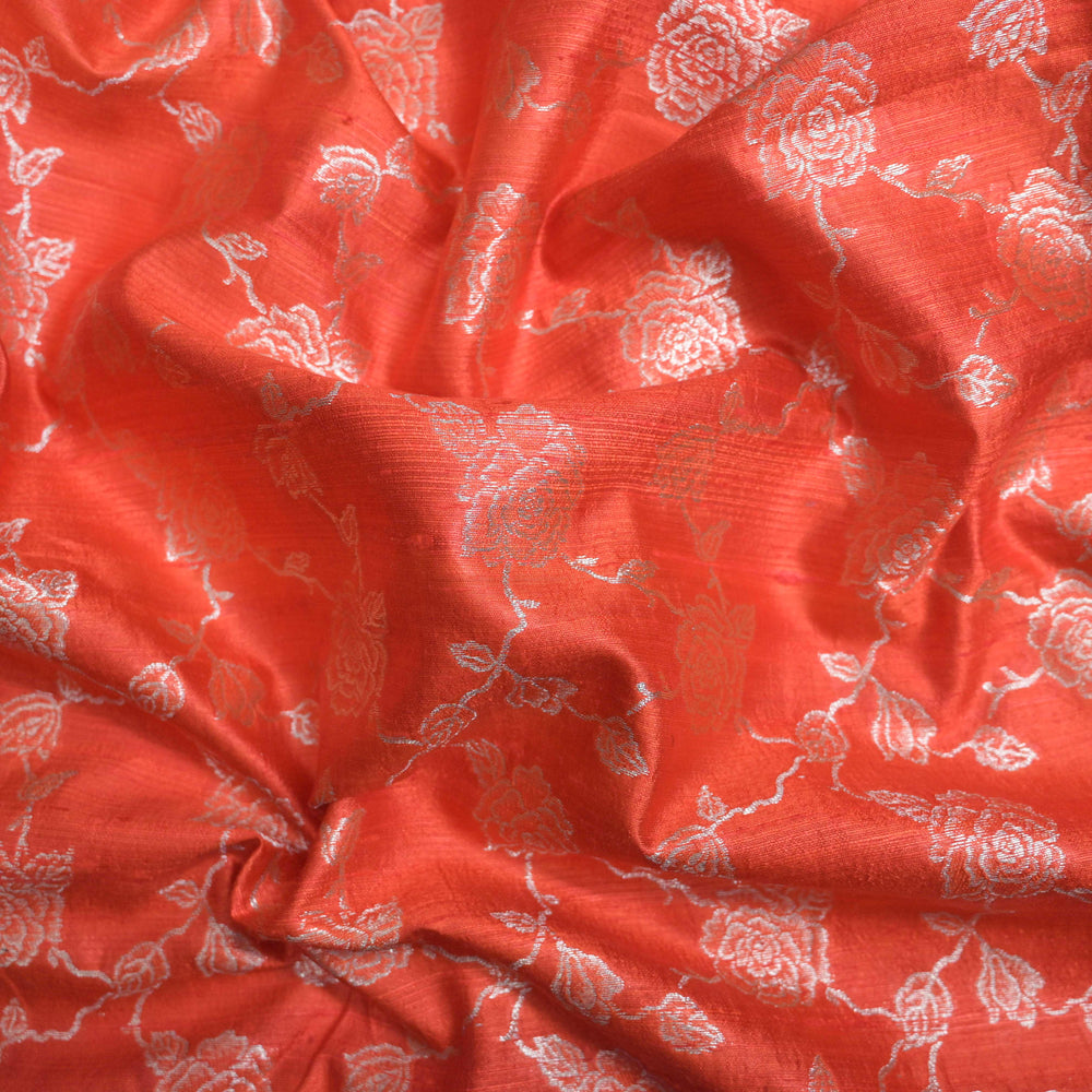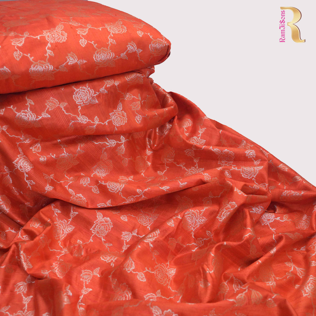 Orange Pure row silk Zari Brocade fabric. | 165-192O
