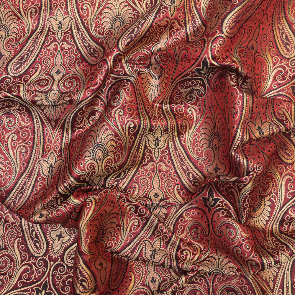 Maroon & Gold Paisley Brocade Fabric| 100-23-121