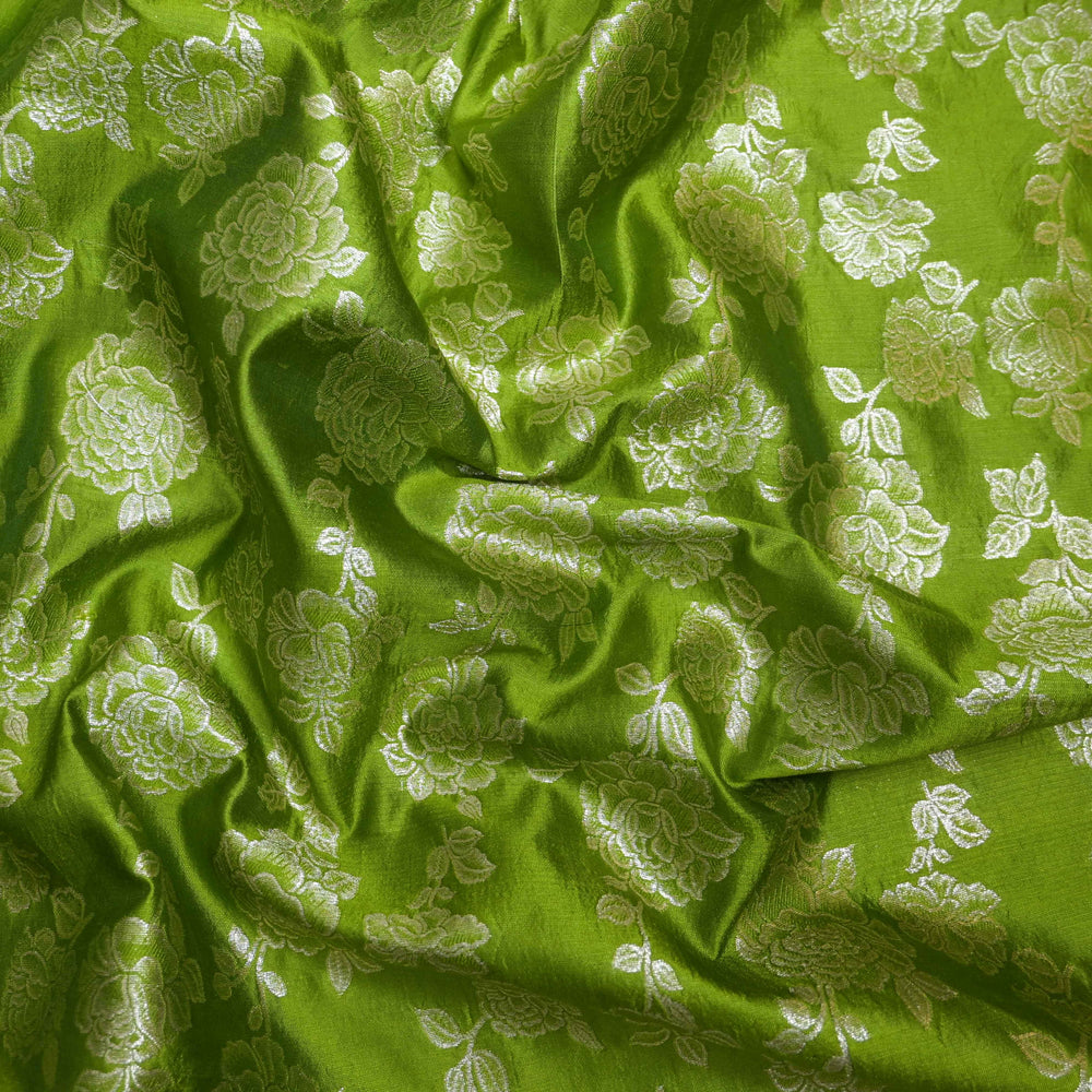 Parrot green Pure mango Silk Zari Brocade fabric. | 165-192PG