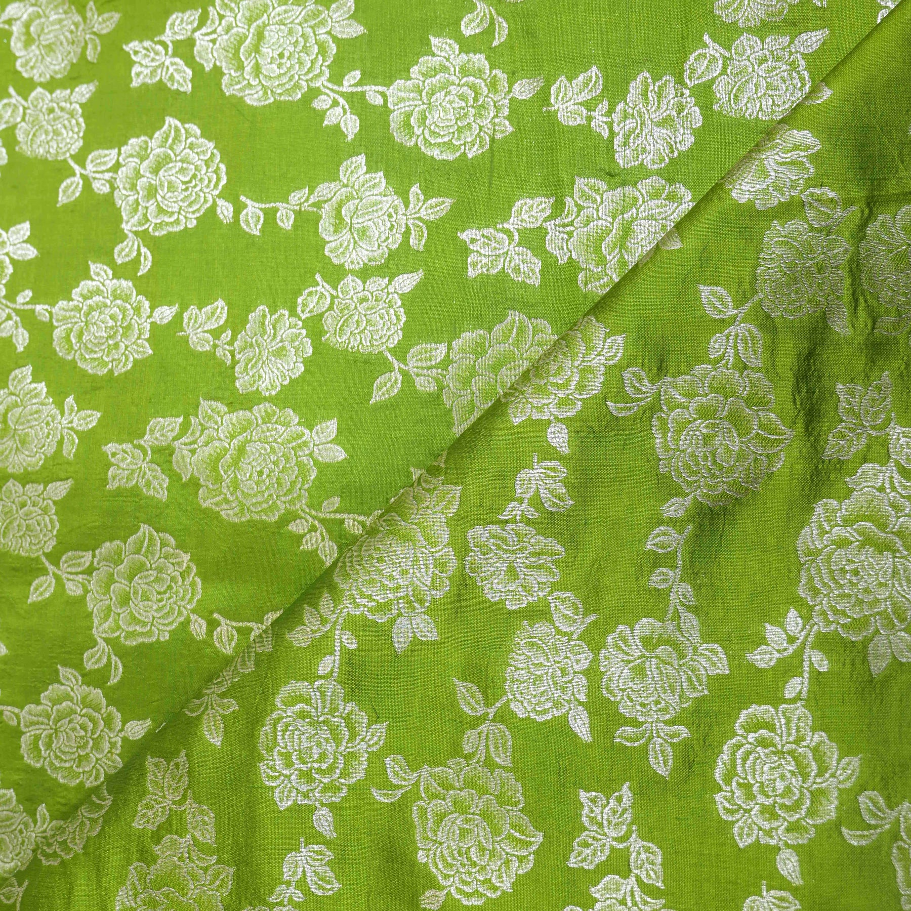 Experience the timeless charm of premium pure raw mango, featuring a rich natural texture and elegant floral woven design. The fabric showcases a graceful sheen with a slightly crisp feel, highlighting the authentic beauty of raw silk. Perfect for sarees, lehengas, ethnic suits, dupattas, and festive décor, this fabric blends tradition with luxury. Ideal for bridal, festive, and couture creations, raw silk adds depth, richness, and sophistication to every design.