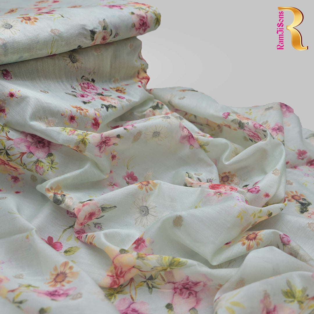 Mint Green Silk Chanderi Zari Print.| 248-389M