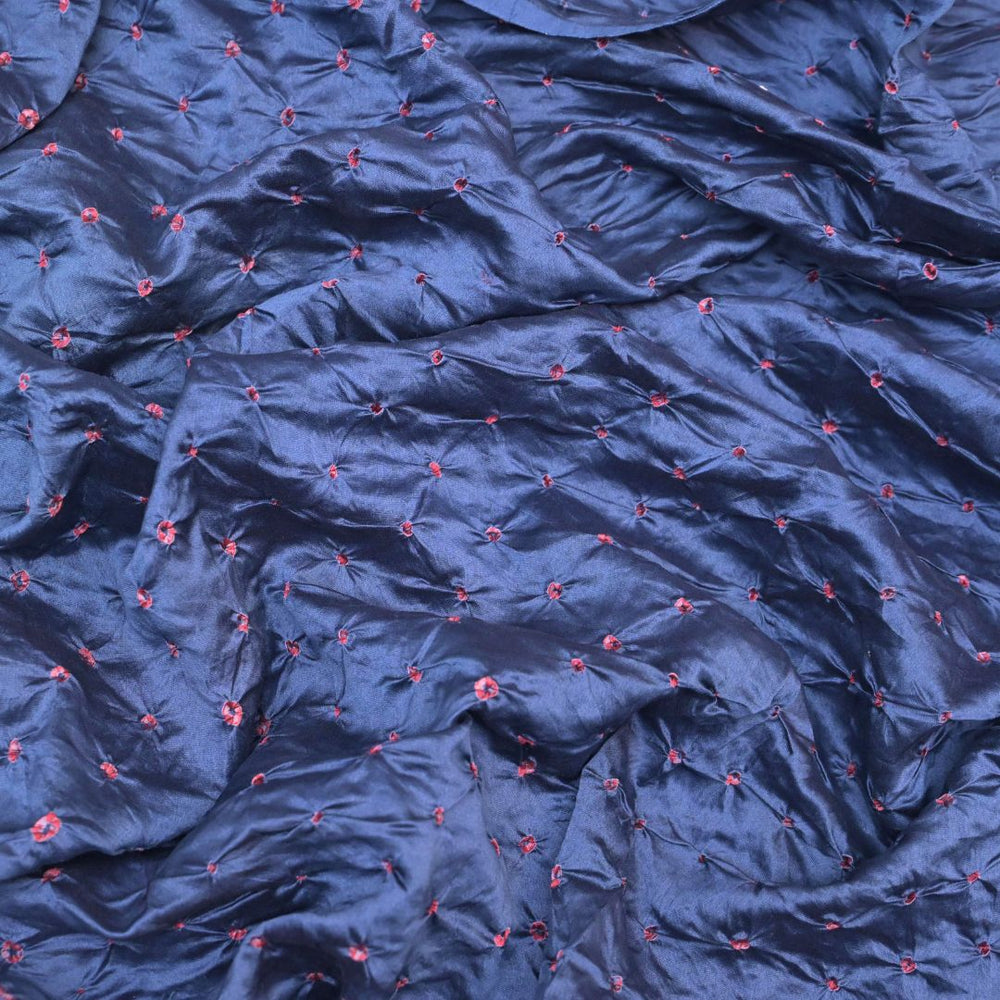 Denim Blue Pure Silk Chanderi Bandhni Fabric | CN-79-1079