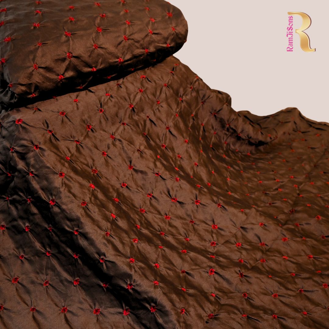 Chocolate Brown Pure Silk Chanderi Bandhni Fabric | CN-79-1087