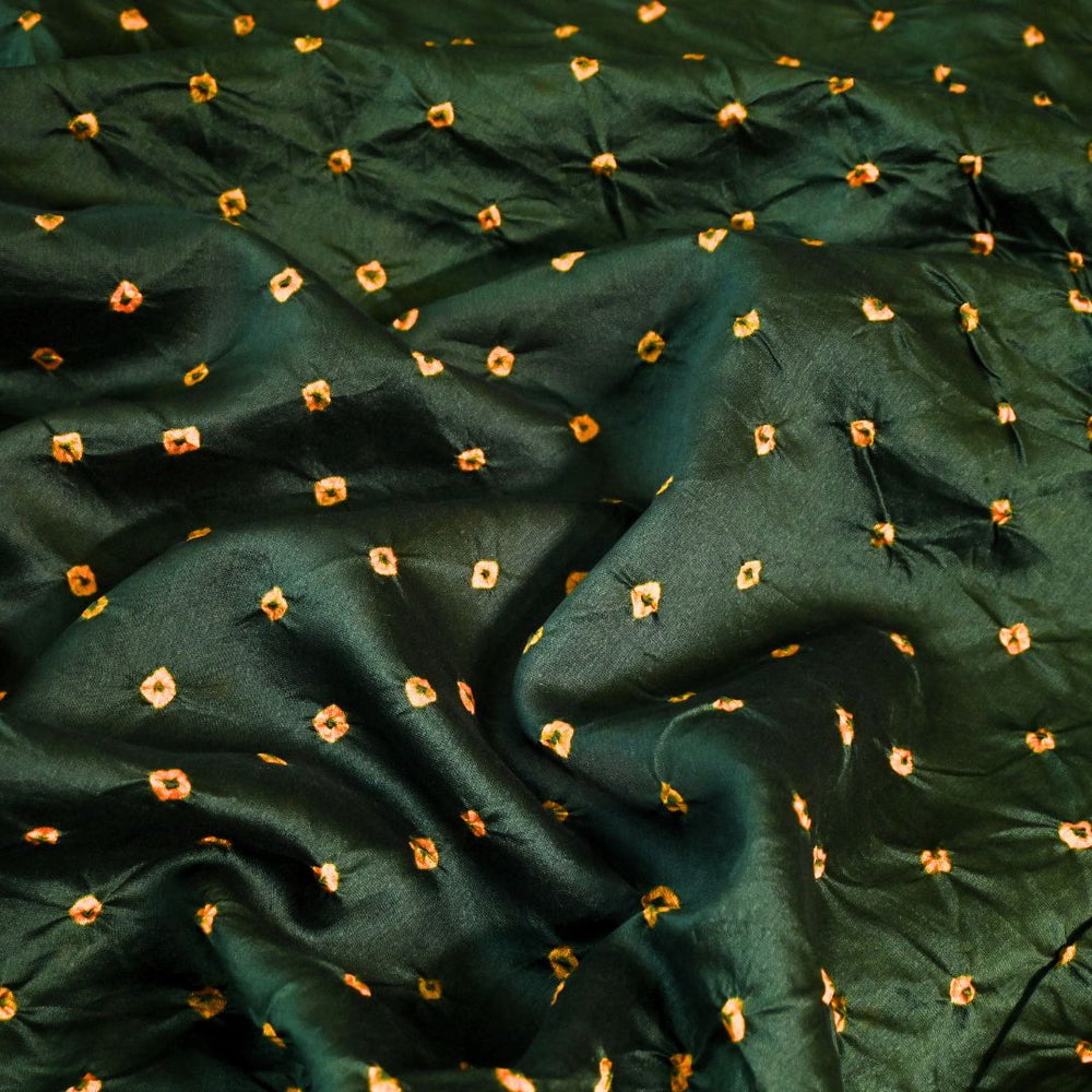 Deep Bottle Green Pure Silk Chanderi Bandhni Fabric | CN-79-1086
