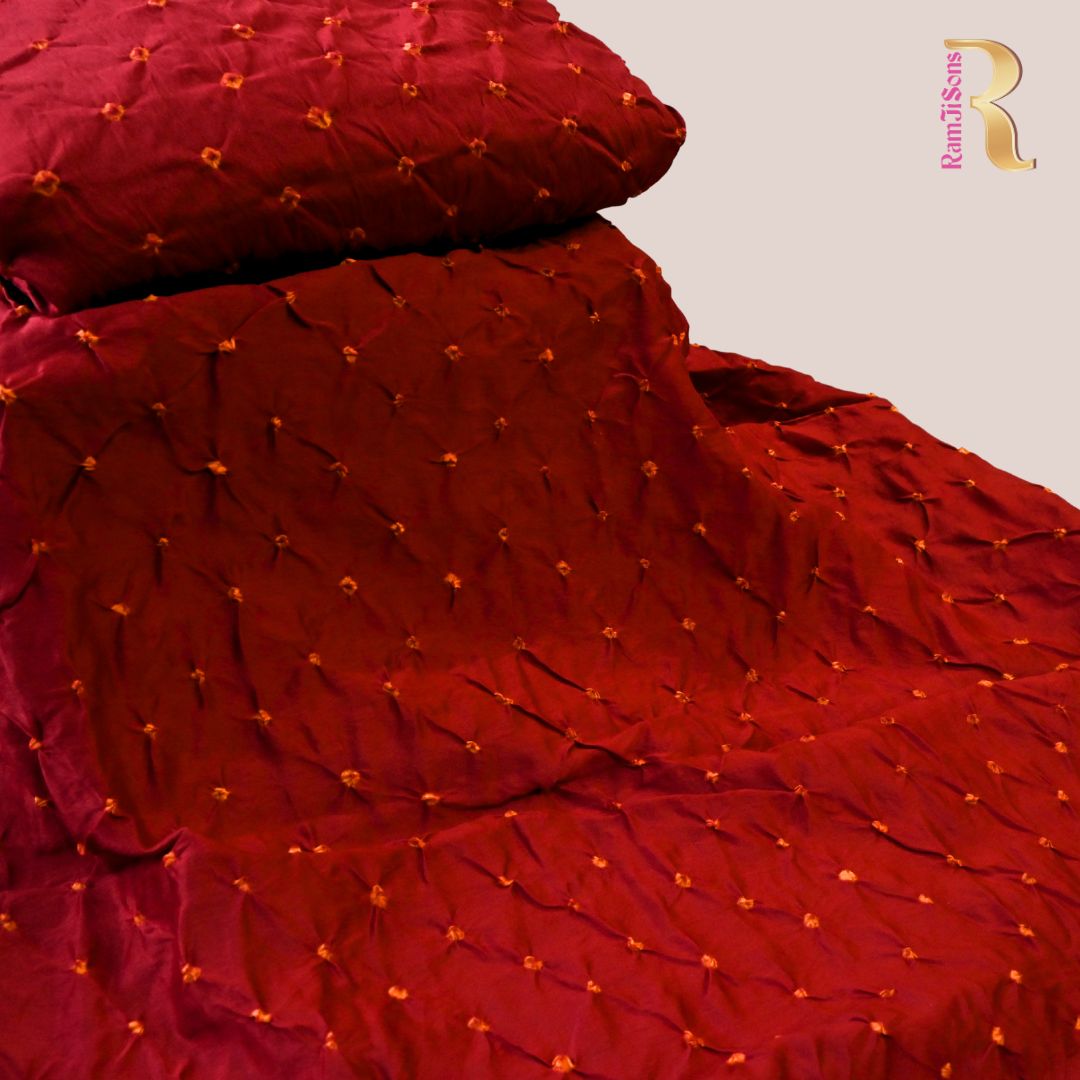 Deep Vermilion Pure Silk Chanderi Bandhni Fabric | CN-79-1084