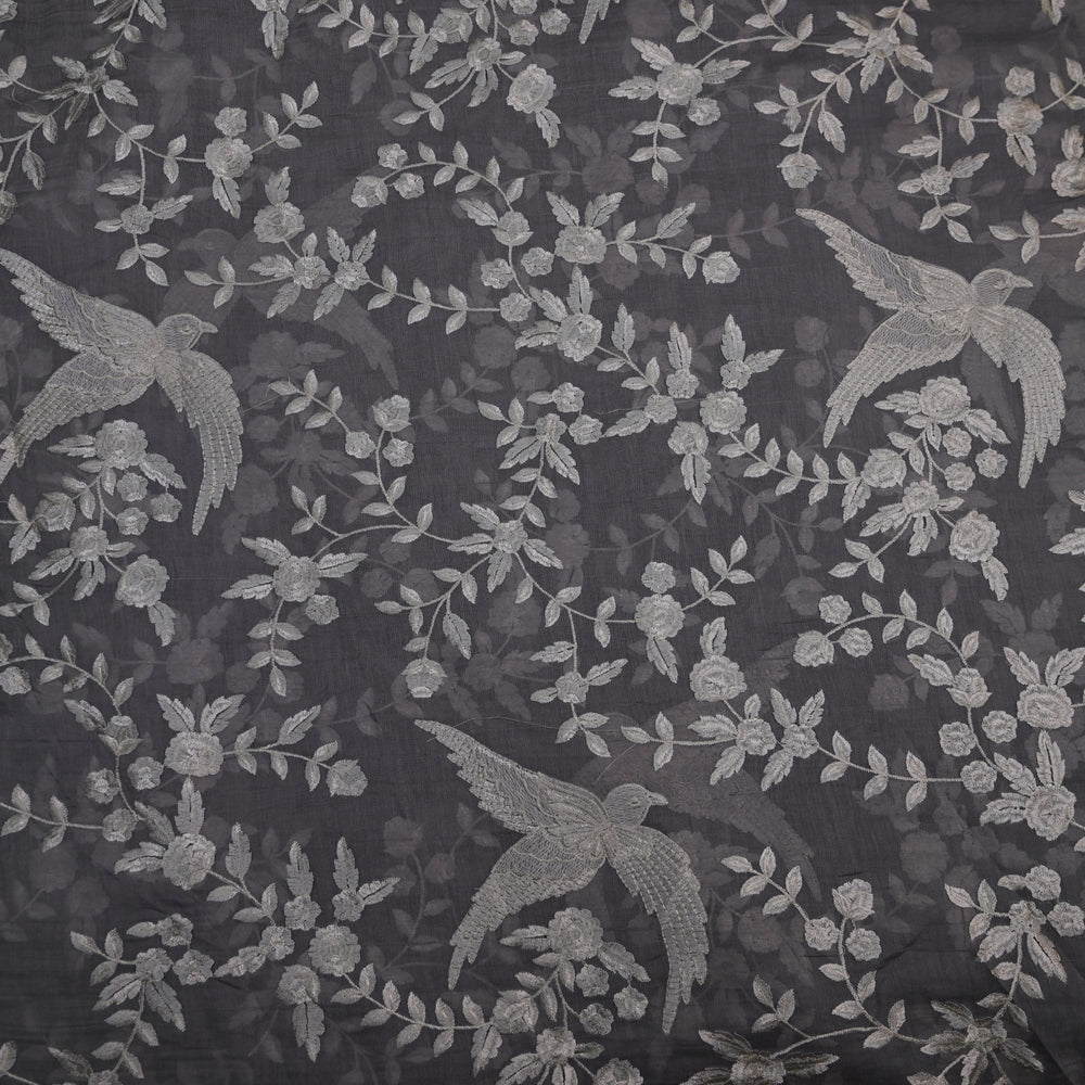 Charcoal Grey with White Cotton Chanderi Thread Embroidery | CN-1037