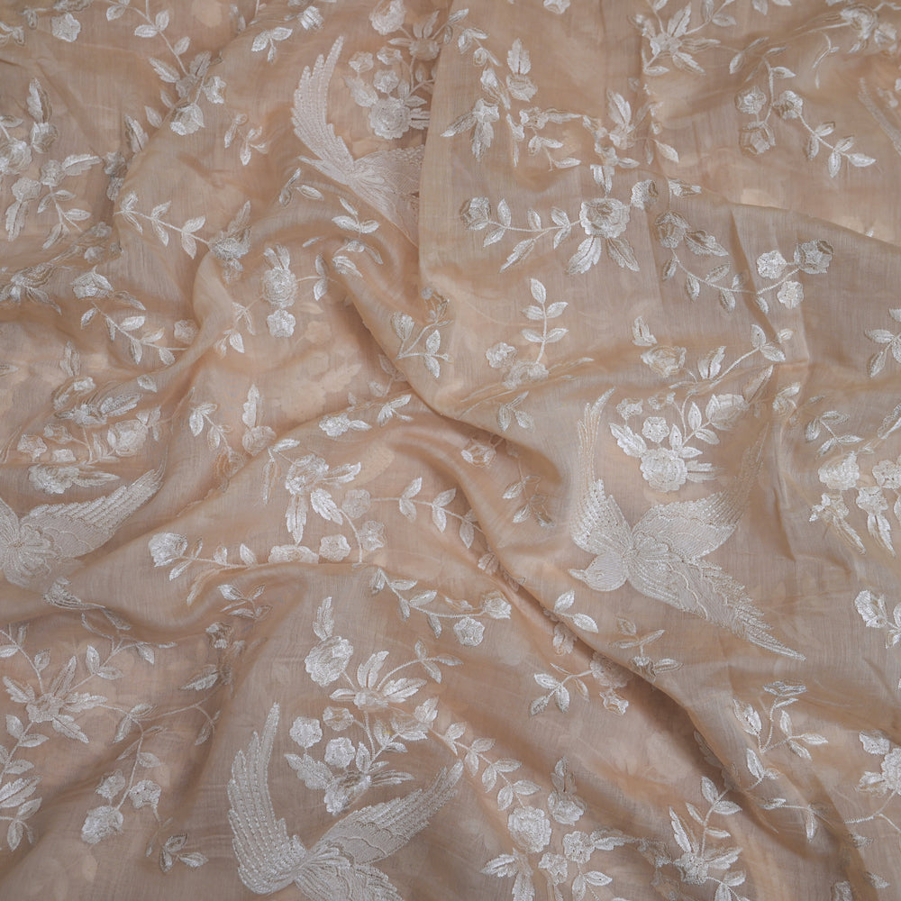 Champagne Beige Cotton Chanderi with White Thread Embroidery | CN-1035