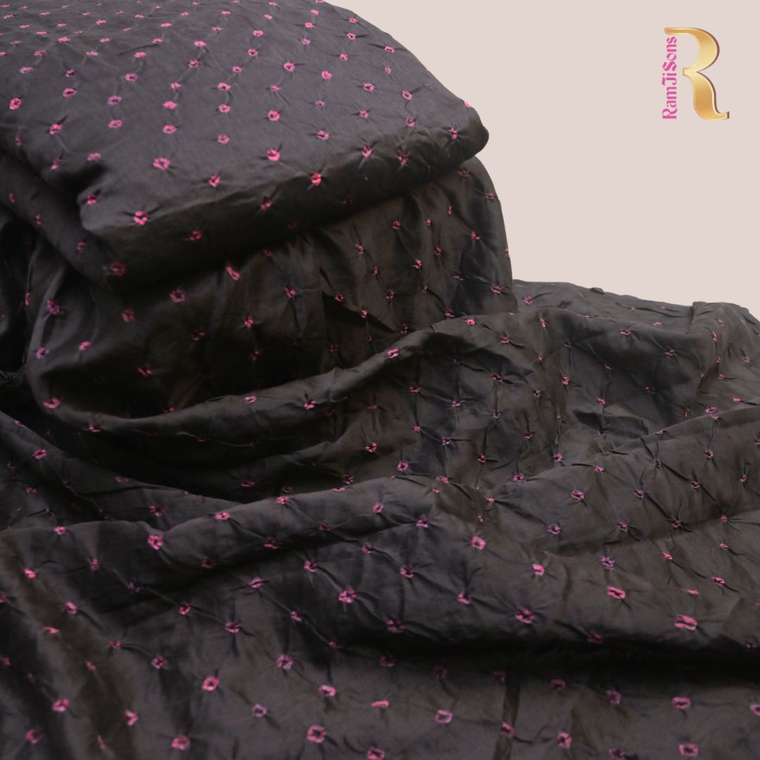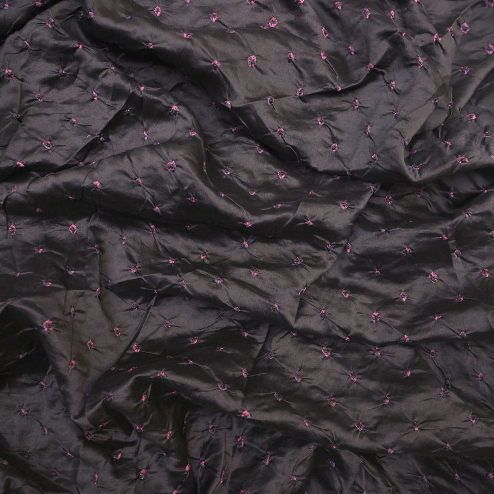 Charcoal Black Pure Silk Chanderi Bandhni Fabric | CN-79-1077