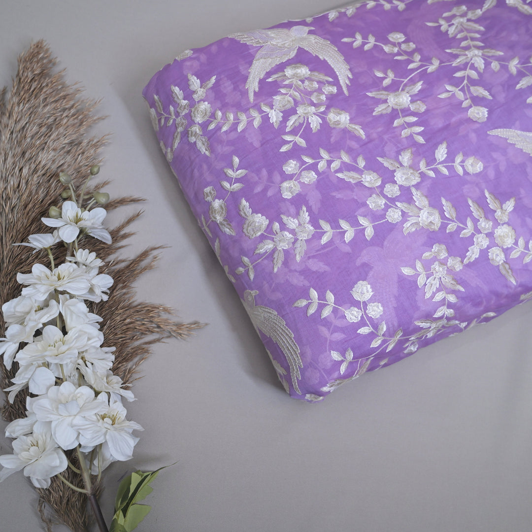 Lavender Purple with White Cotton Chanderi Thread Embroidery | | CN-1036