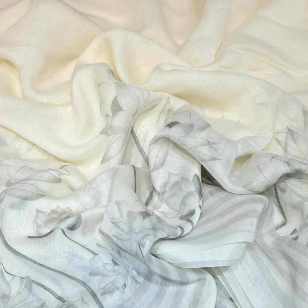 Woven from the finest Mul Chanderi, this fabric is celebrated for its feather-light texture, natural sheen, and air-like drape. Each piece is adorned with high-definition digital prints — from classic florals to modern abstracts — capturing vivid detail and refined beauty.