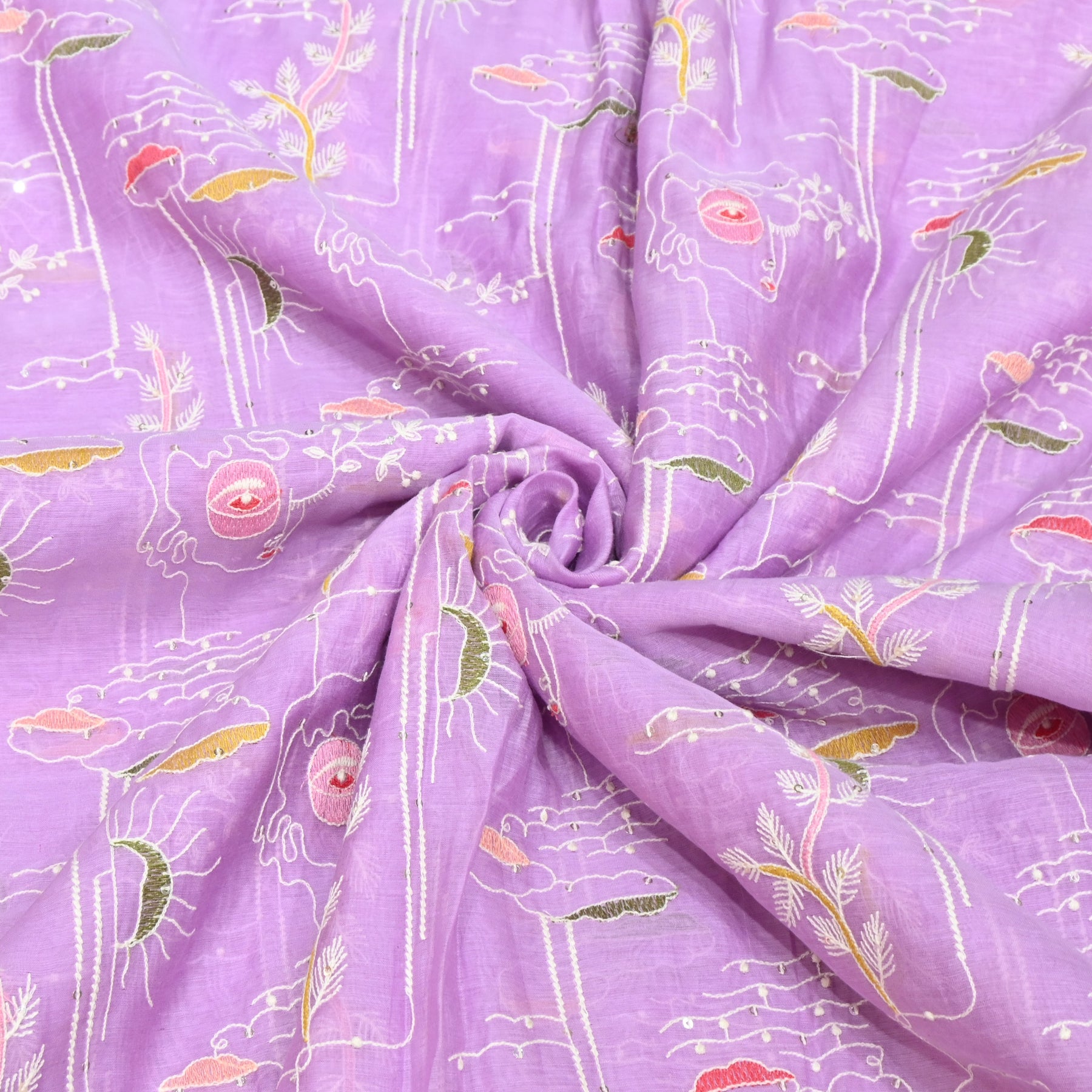 Lilac Mul Chanderi Fabric with allover Sequins Thread Embroidery.