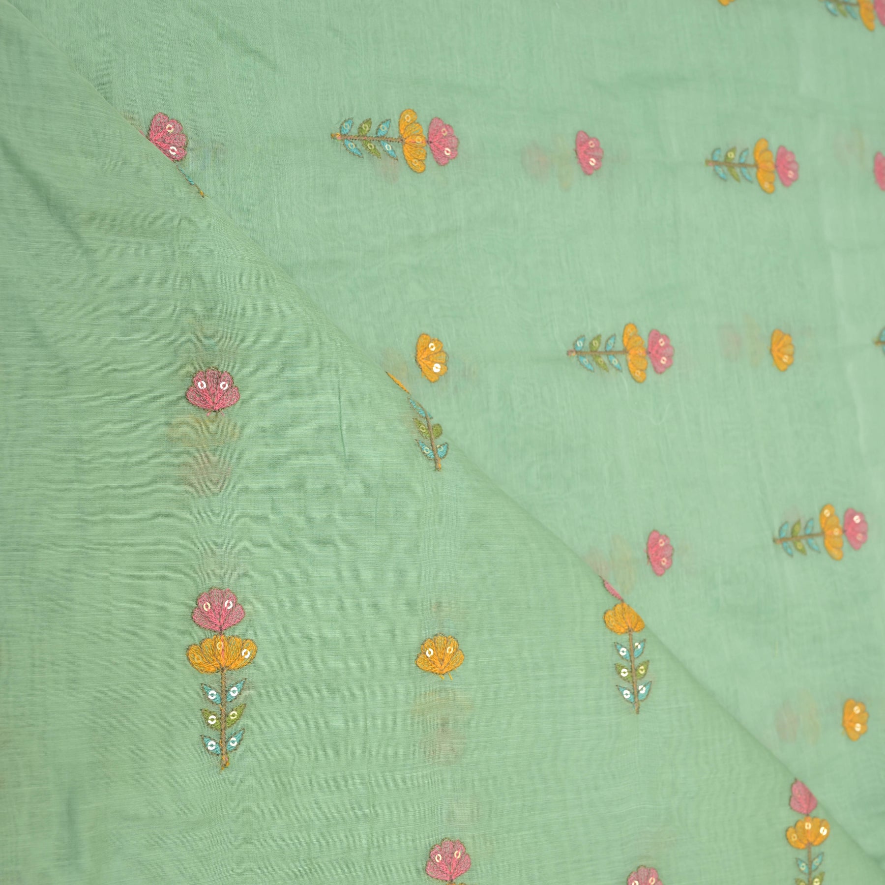 Mint green mul chanderi Embroidered Floral Buti Fabric