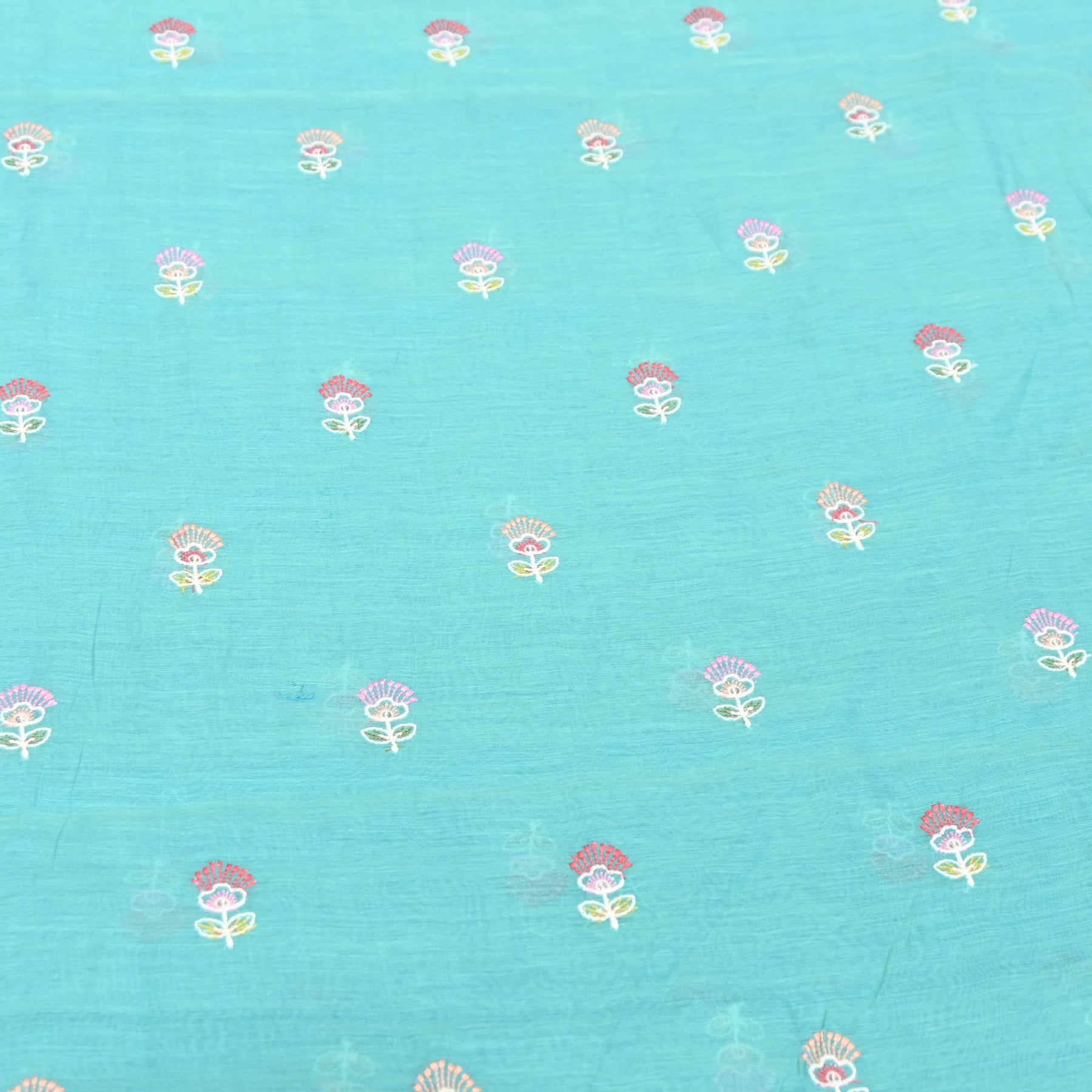Adorned with delicate multicolor floral thread embroidery detailing, the design reflects understated elegance and timeless charm. The fine craftsmanship enhances the fabric without overpowering its airy beauty, making it ideal for sophisticated ethnic and contemporary silhouettes.