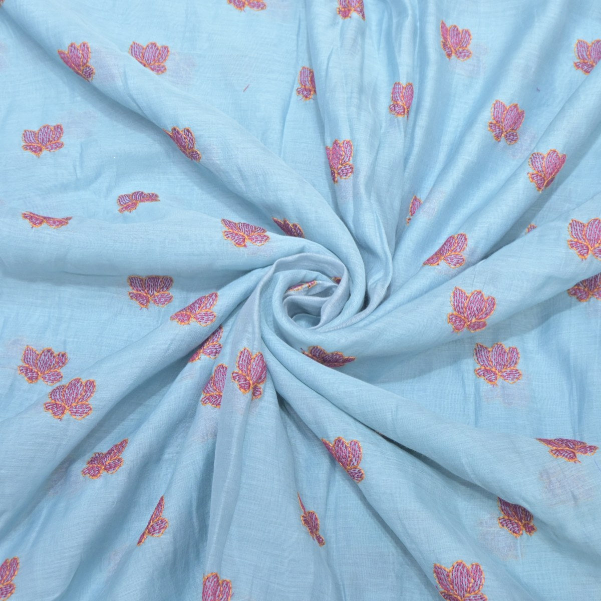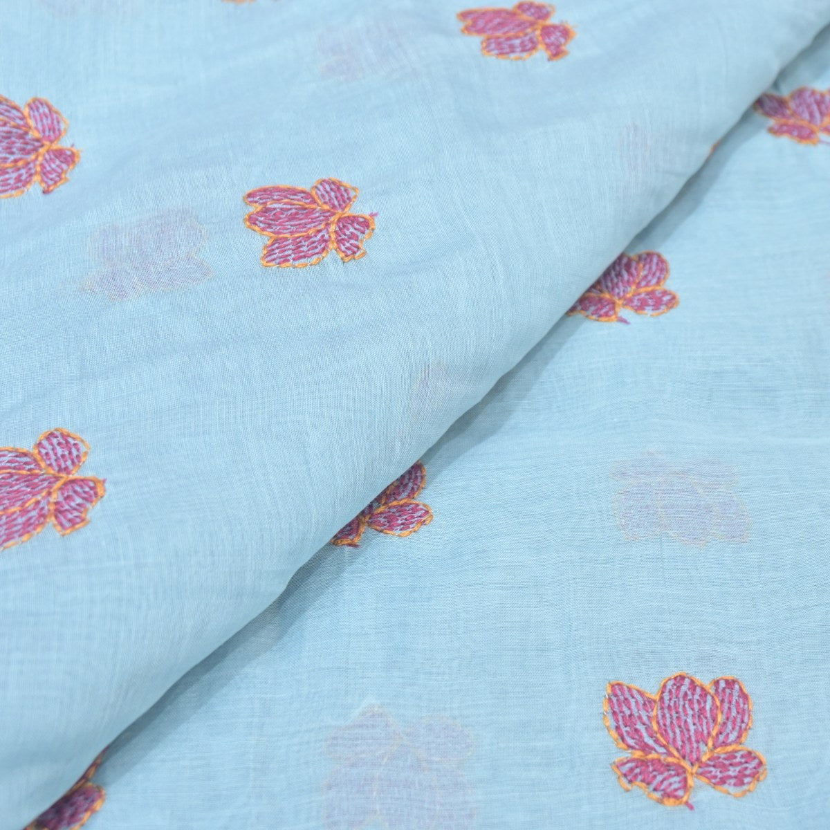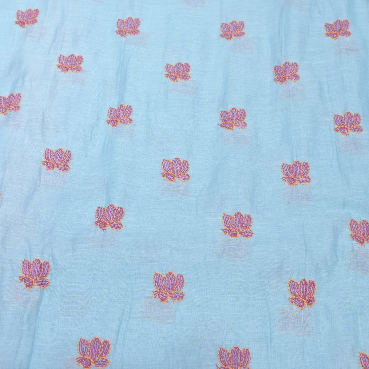 Sky Blue Mul Chanderi Fabric with Threadwork Embroidery