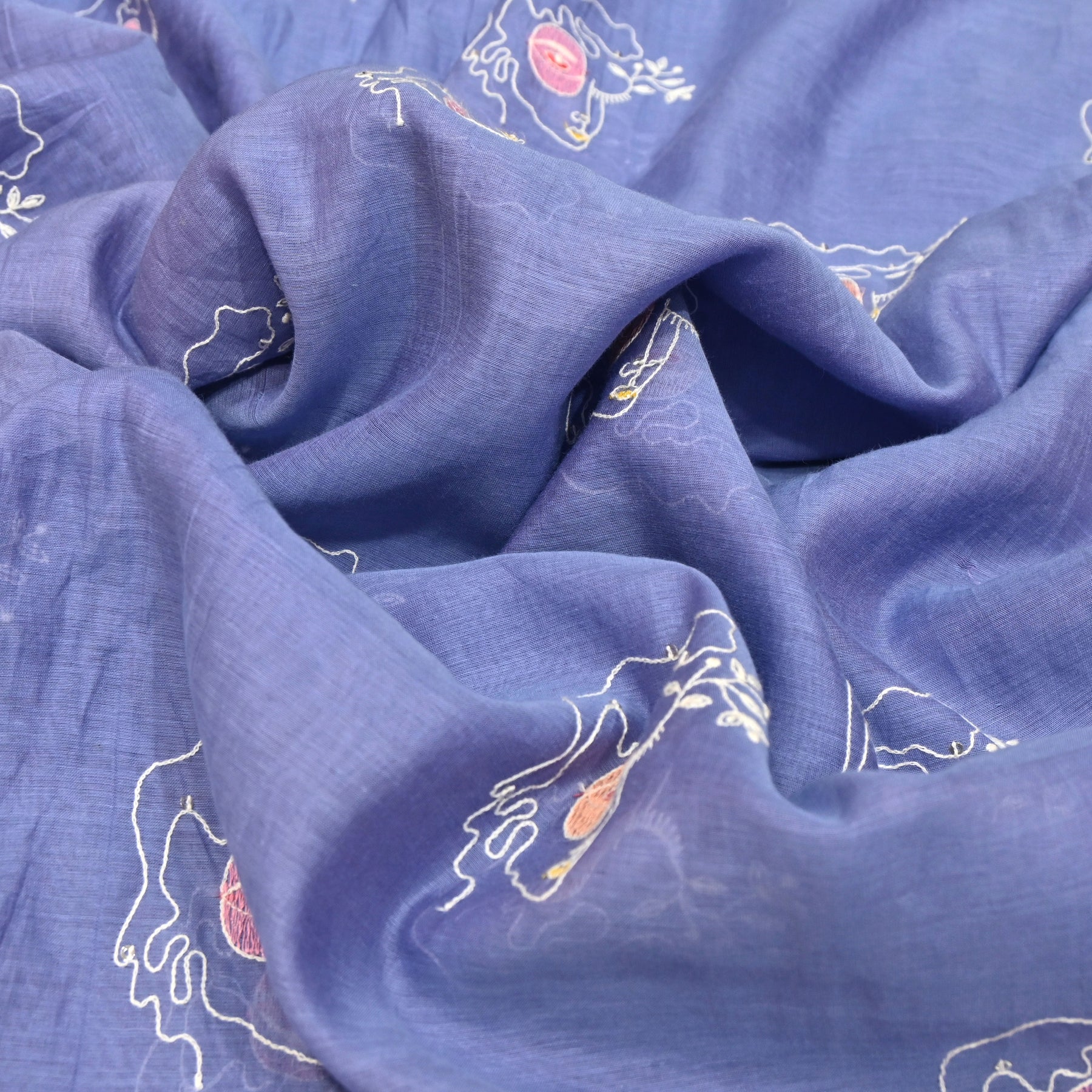 Violet Mul Chanderi Fabric with allover Sequins Thread Embroidery.