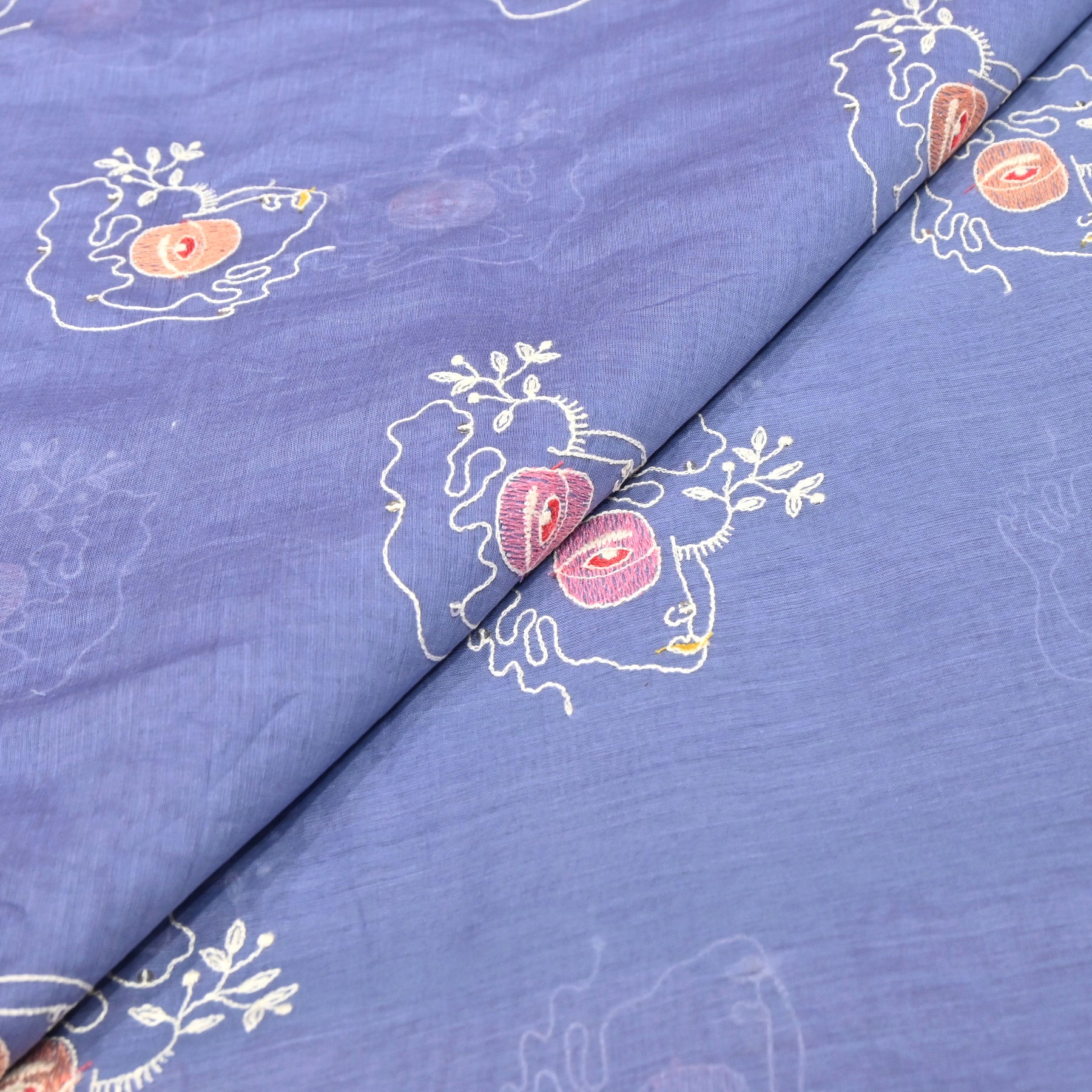 Crafted on a soft, lightweight base, the fabric features delicate white thread embroidery with subtle pink detailing at the center of the motifs. The minimal yet artistic design adds a playful charm while maintaining an elegant balance. The smooth texture and breathable feel ensure comfort along with style.