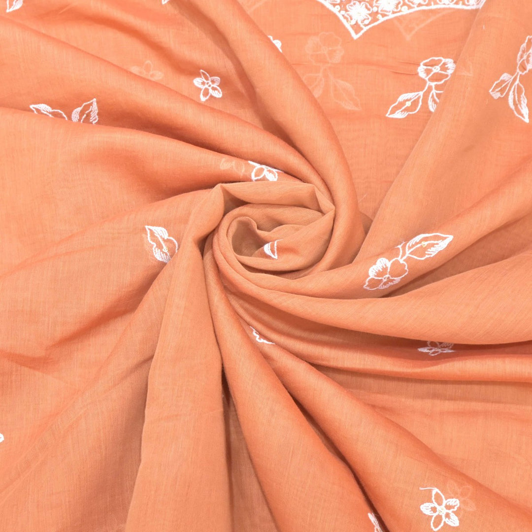 Peach Mul Chanderi Fabric with Threadwork Embroidery