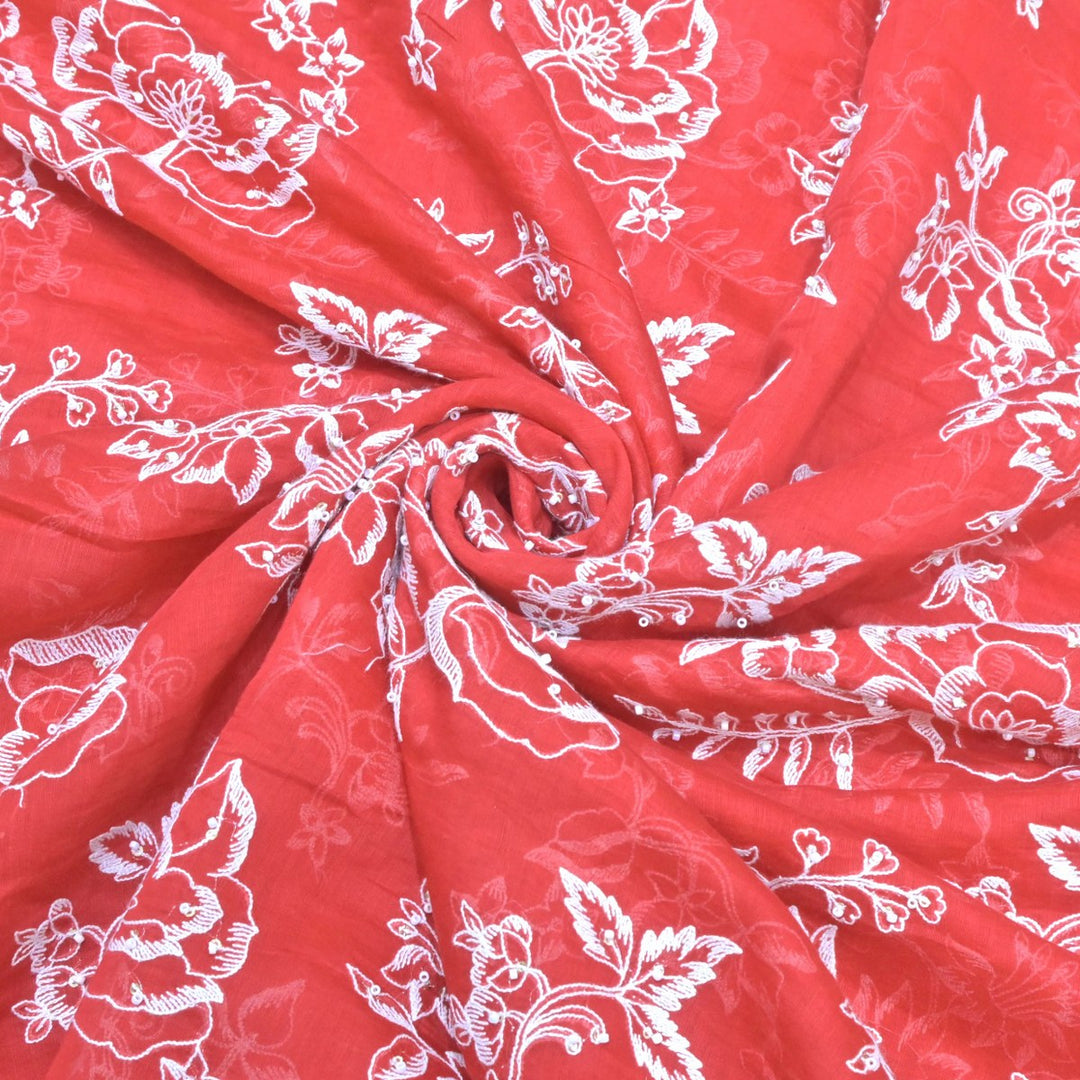 Red Mul Chanderi Fabric with Threadwork Embroidery