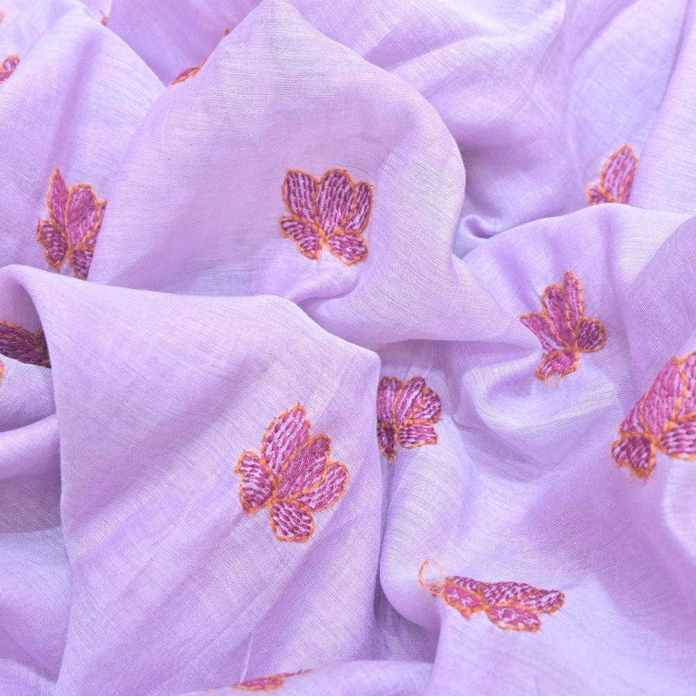 Lavender Mul Chanderi Fabric with Threadwork Embroidery