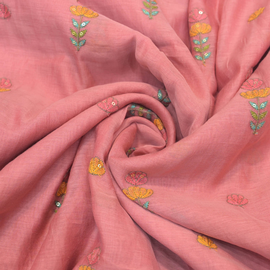 Dusty Rose Pink Embroidered Floral Buti Fabric.