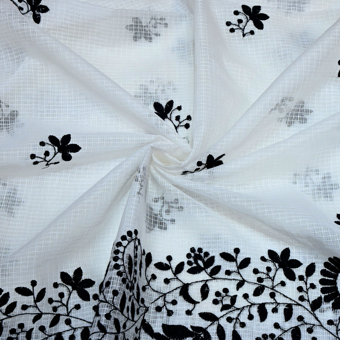 off-white with black Color Cotton Kota Thread Embroidery Fabric