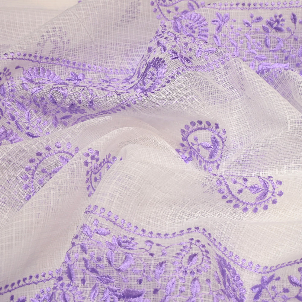 Lavender Pure Cotton Floral Thread Embroidery Fabric