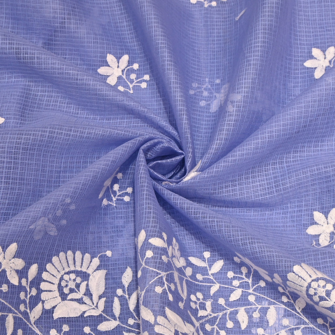 Light blue Color Cotton Kota Thread Embroidery Fabric