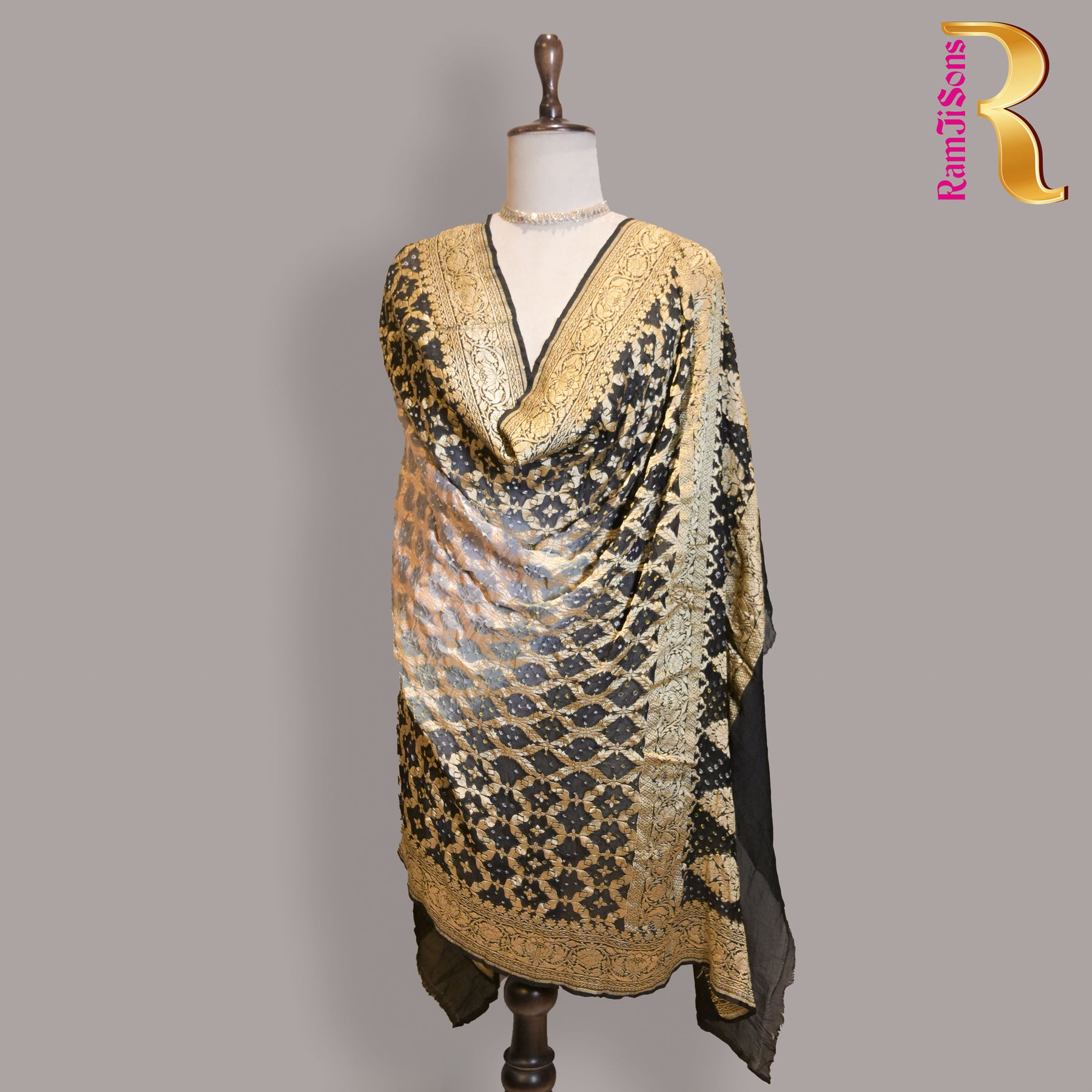 Celebrate timeless Gujarati craftsmanship with our Black Ghatchola Dupatta, a symbol of heritage, color, and festive charm.