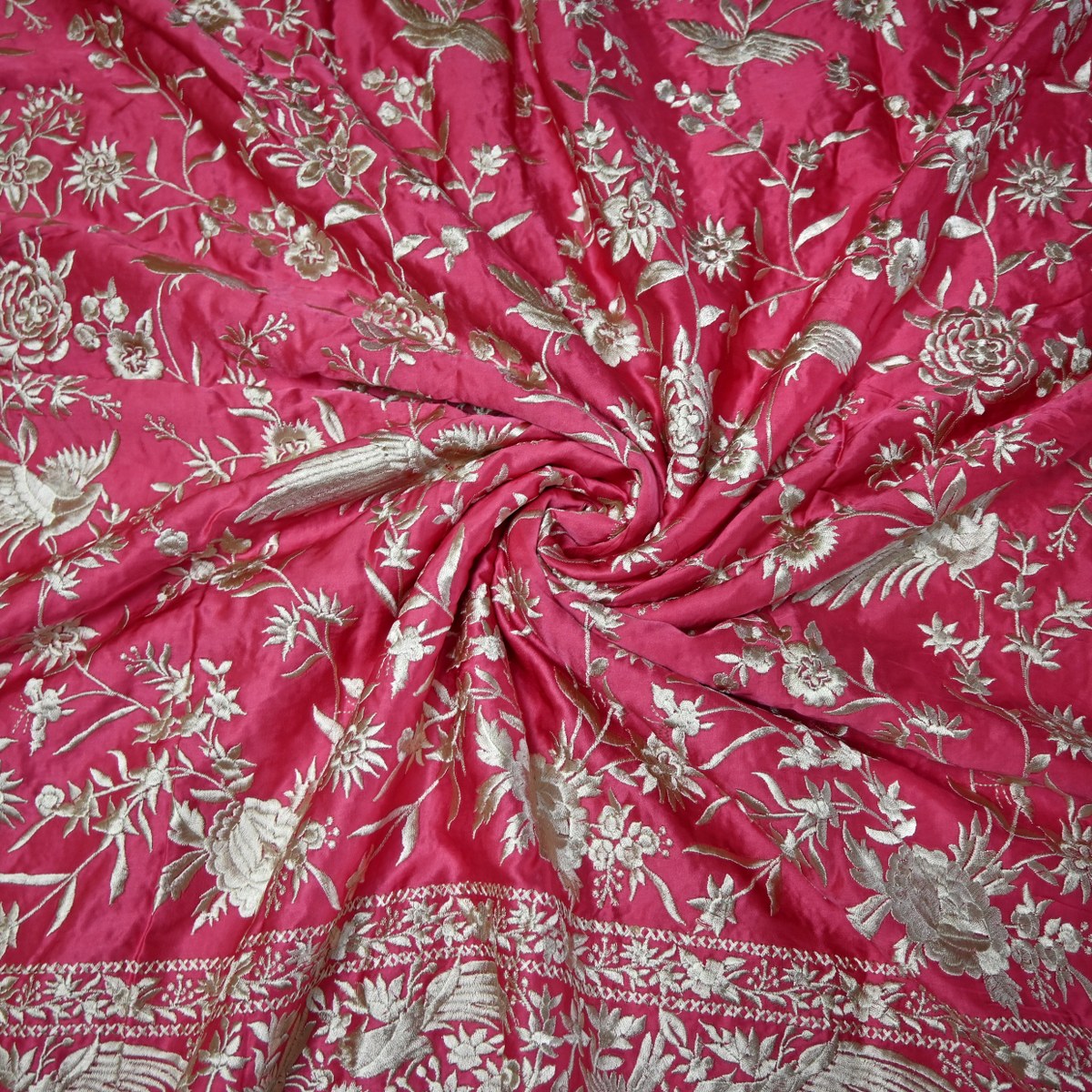 Beautiful Modal Satin Parsi Work Embroidery Fabrics