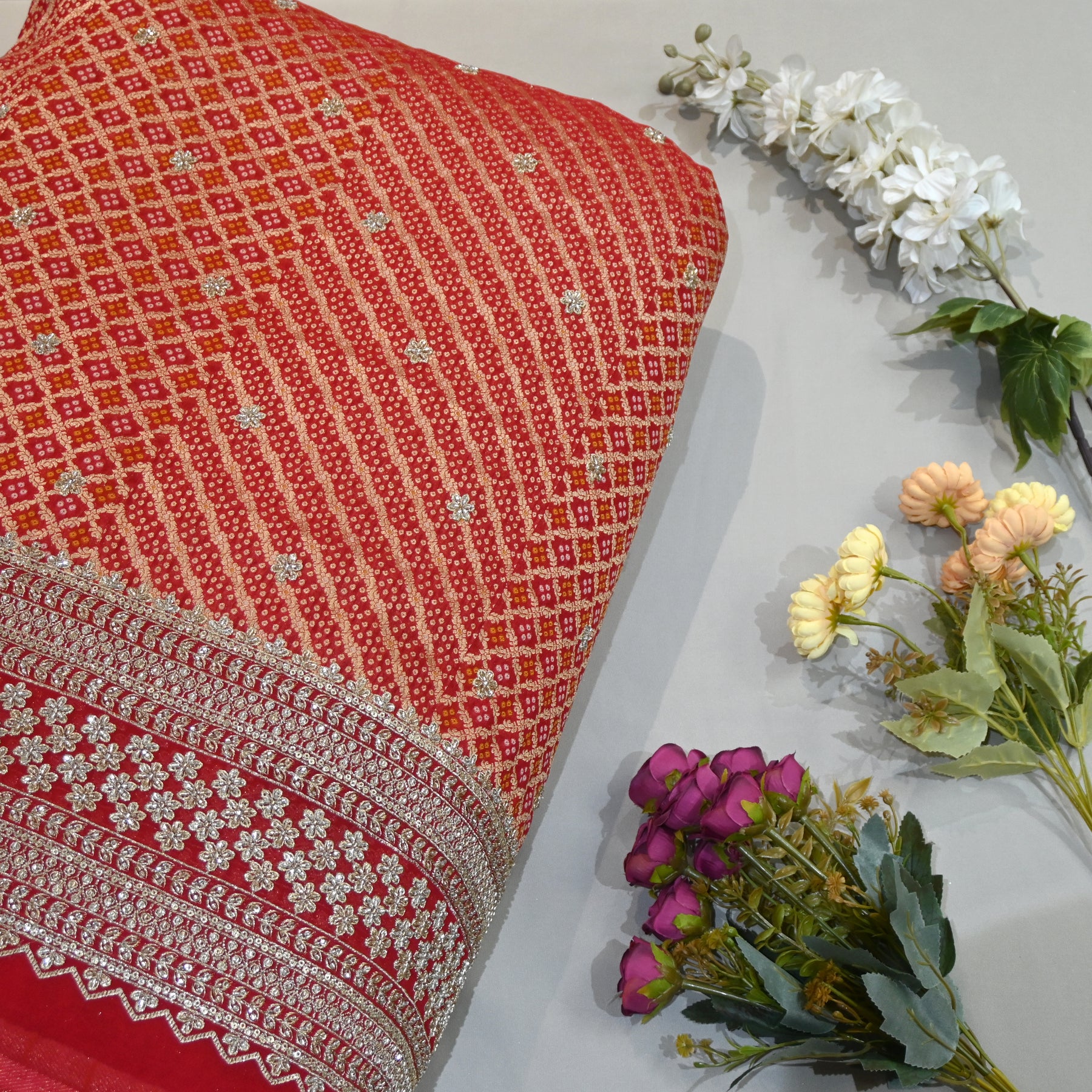 Add timeless elegance to your creations with our Viscose Georgette Bandhni Printed Embroidery Fabric. Inspired by traditional Bandhni artistry, this fabric beautifully blends classic prints with delicate embroidery on a lightweight viscose georgette base. The fluid drape and graceful fall make it an excellent choice for both festive and contemporary designs.