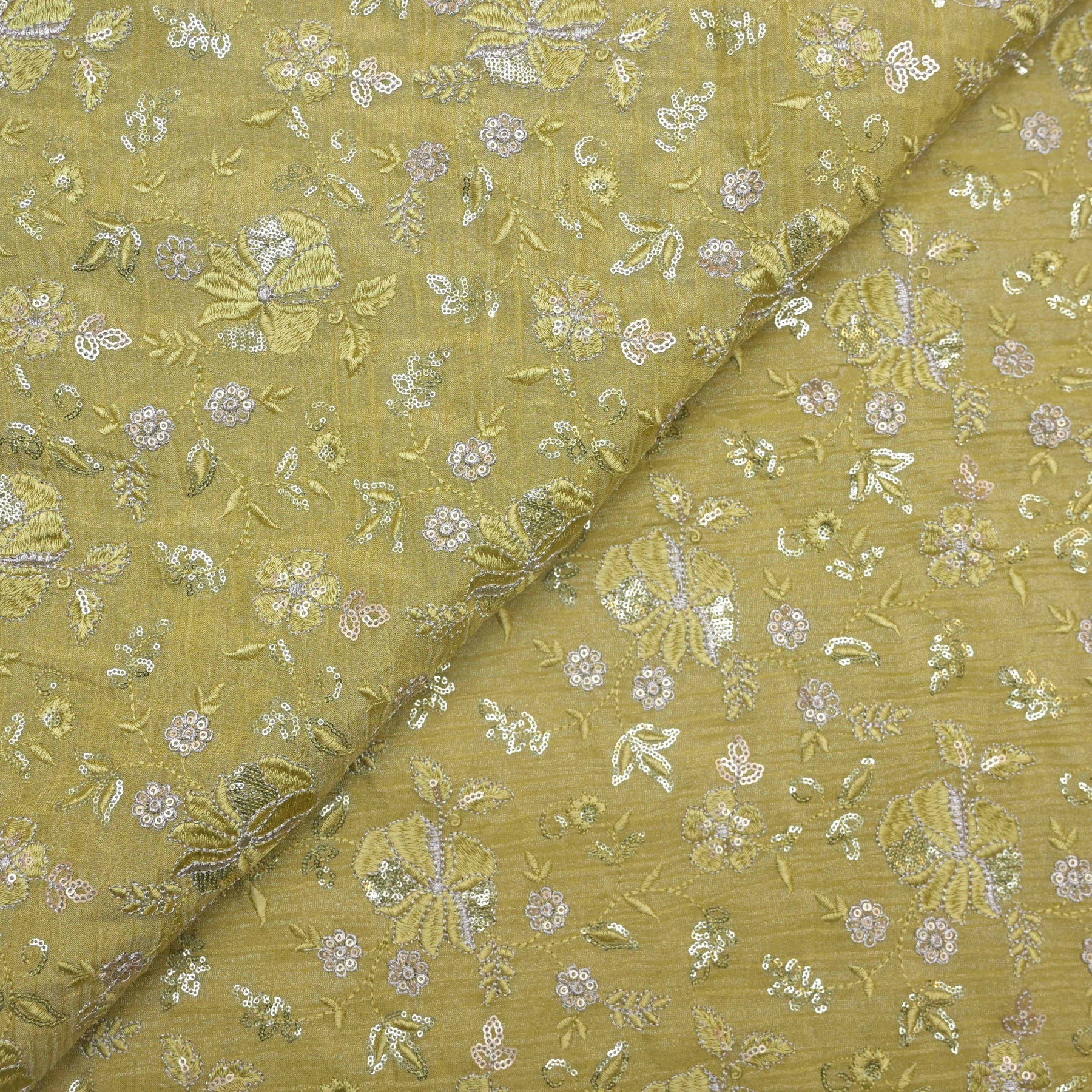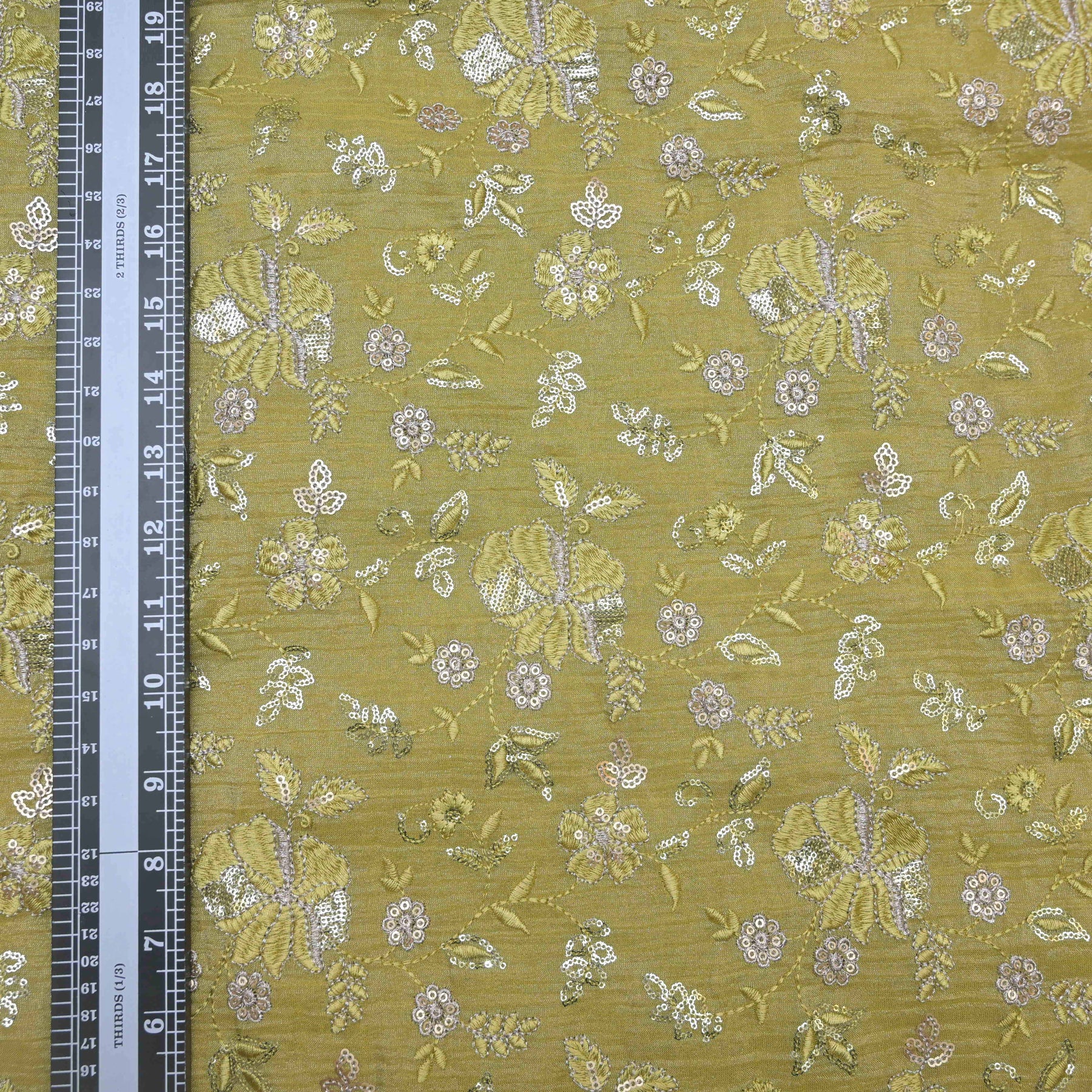 Mustard Olive Crush Tissue Embroidery Fabric.| 852-591MO