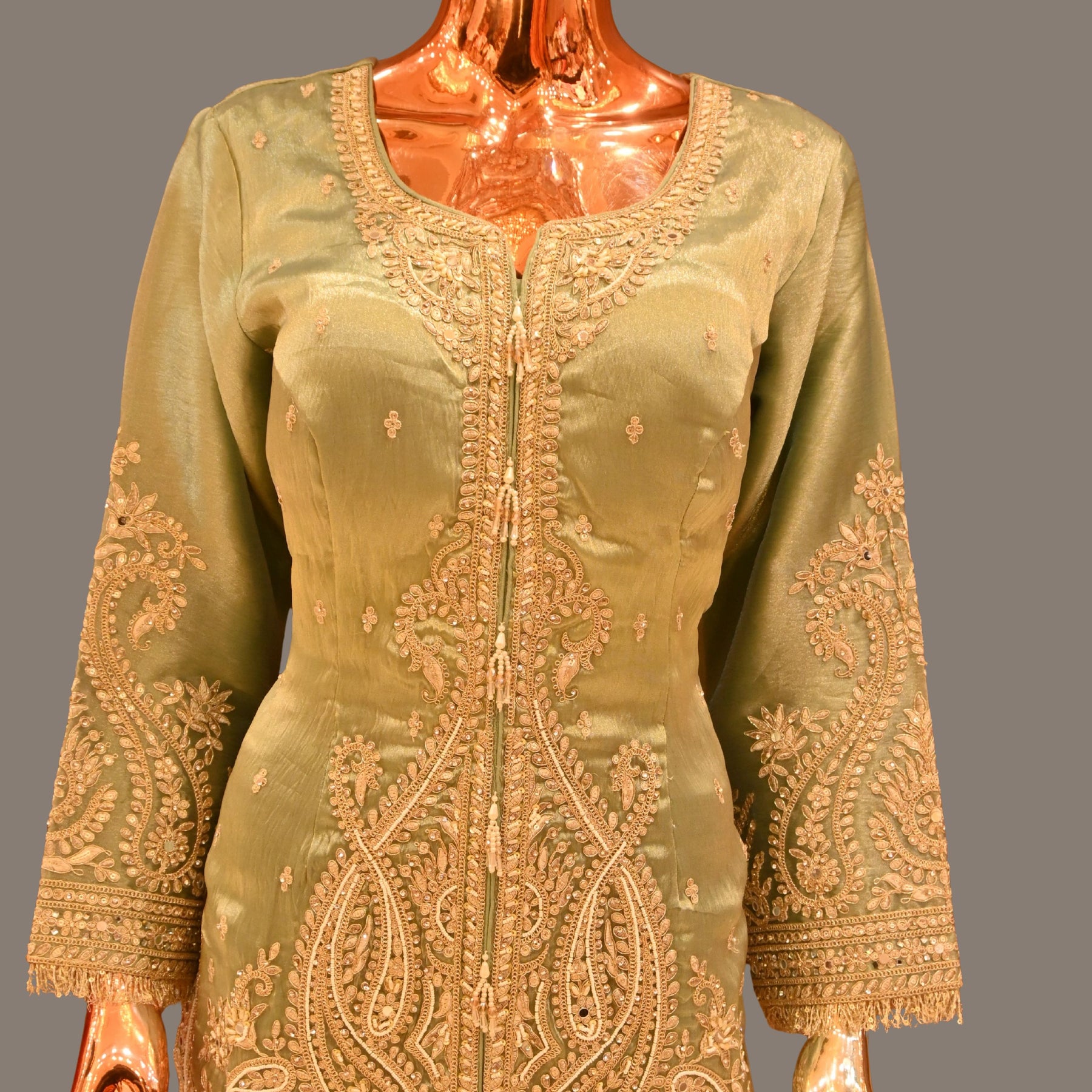 Make a bold yet elegant style statement with our Mint Green Embroidered Indo-Western Sharara Set, designed for modern women who love a fusion of tradition and contemporary fashion.