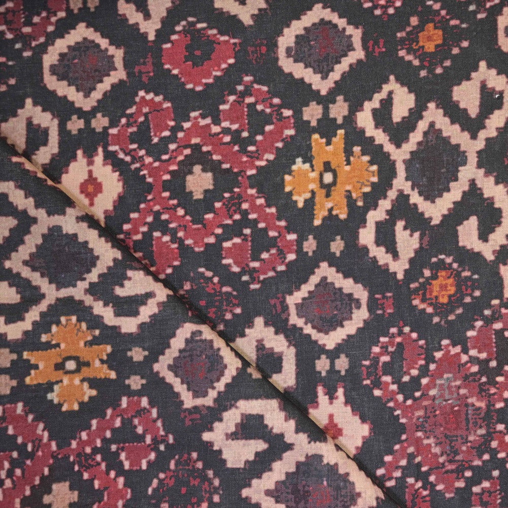 Indigo Blue Floral Buta Printed Pure Linen Fabric