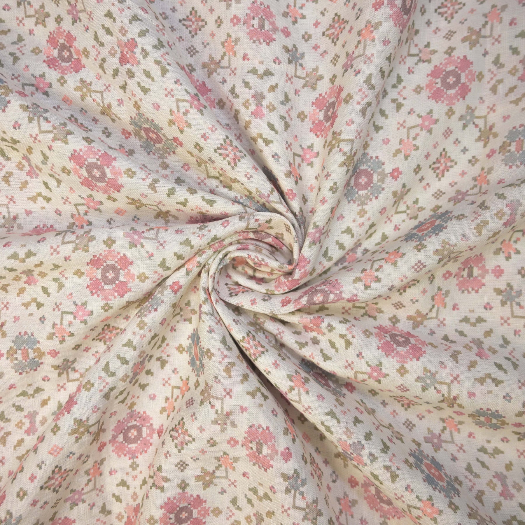 Elevate your ethnic and fusion creations with this exquisite Abstract Floral Printed Pure Linen Fabric. Rendered in serene flowers over an white base, the design reflects a refined contemporary appeal. The breathable linen base ensures comfort and graceful fall. The soft pastel tones make it ideal for both summer and transitional wardrobes.