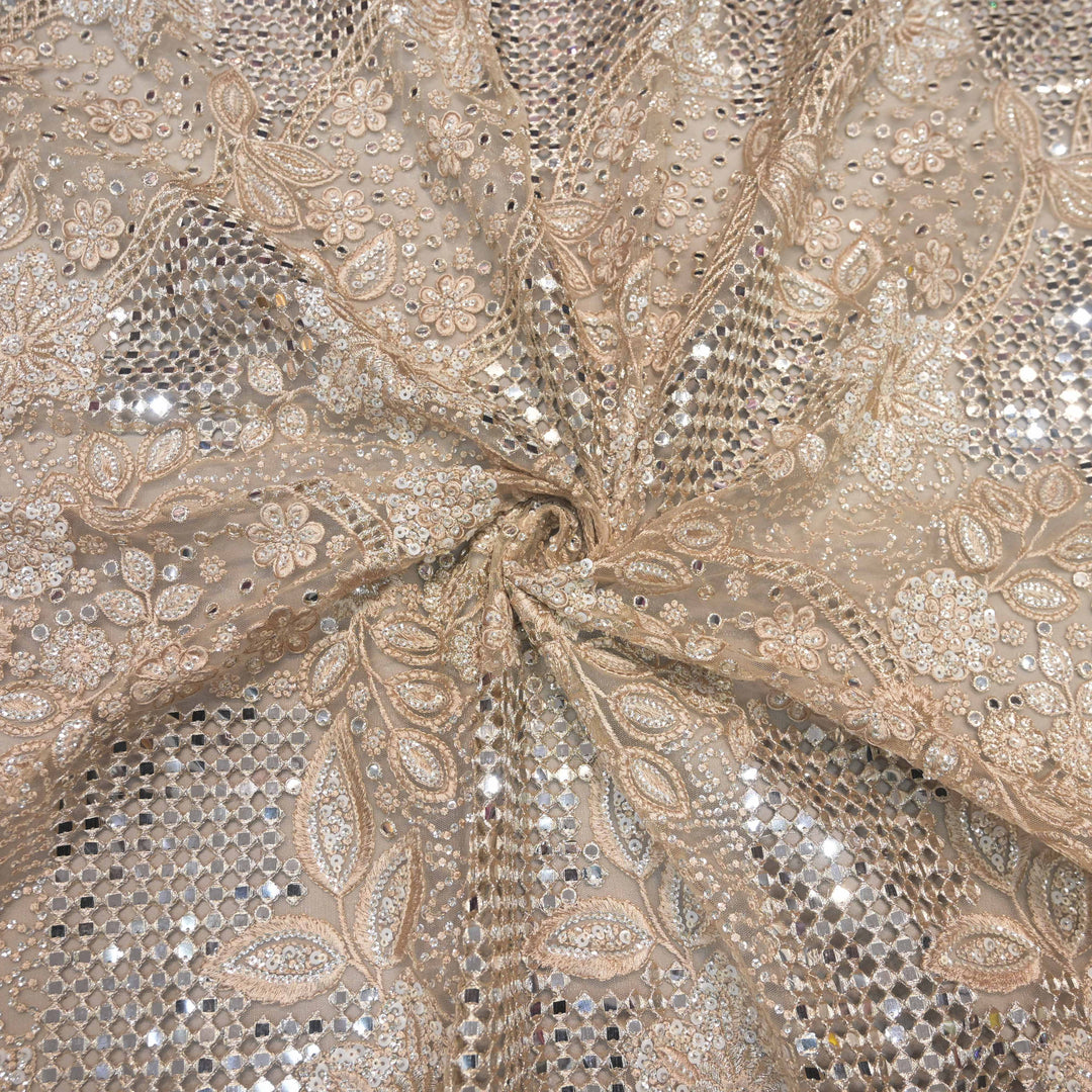 Champagne Beige Imported Net Fabric with Mirror, Sequins & Cutwork Embroidery