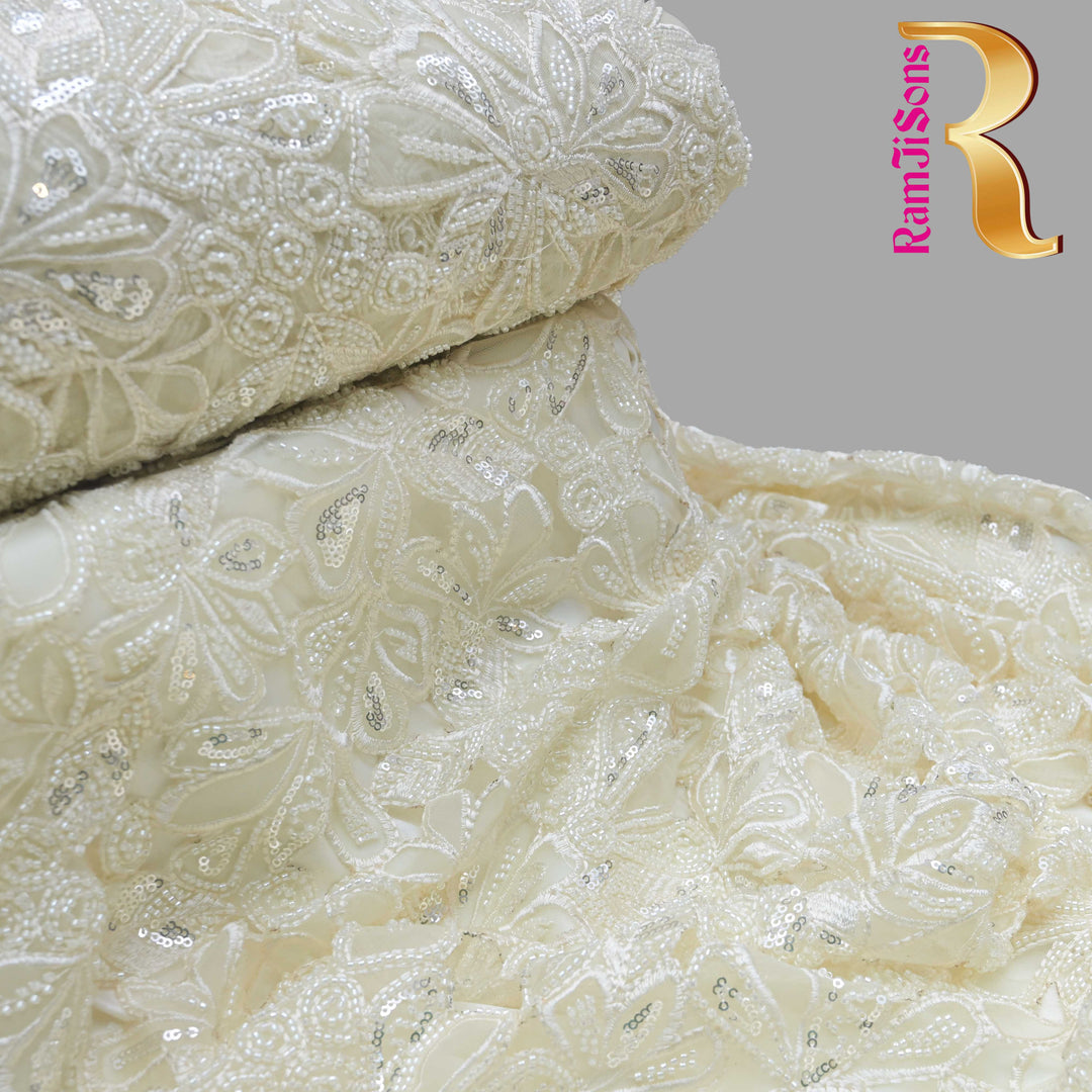 Ivory Net Cut Dana With Sequins Embroidery Fabrics