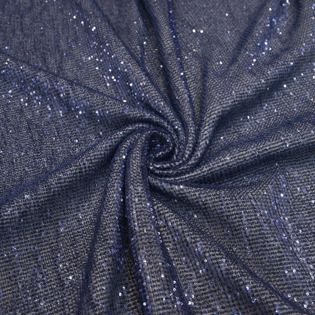 Midnight Blue Imported Net Fabric with allover Sequins Embroidery
