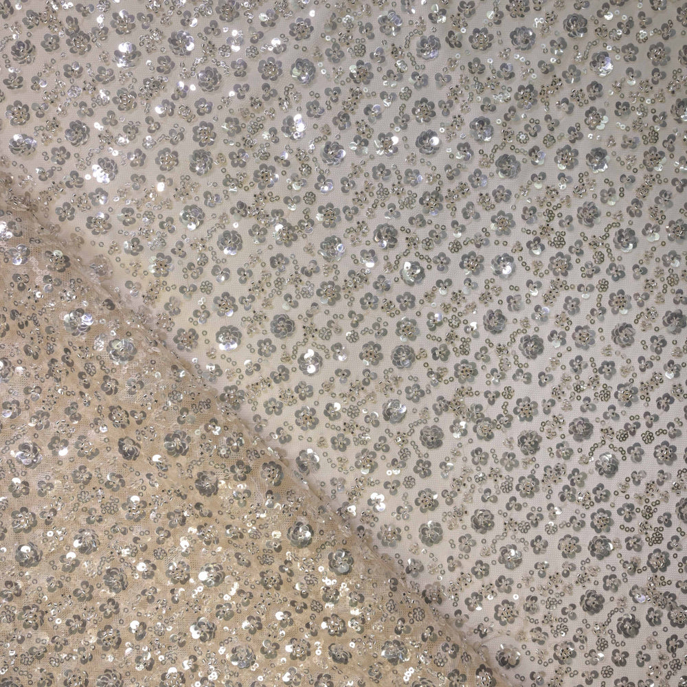 Beige Imported Net Fabric with allover Sequins & Zari Embroidery