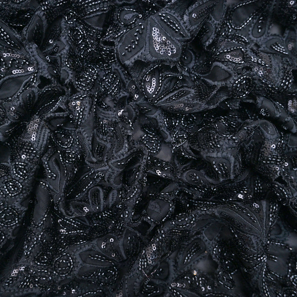 Black Gold Net Cut Dana With Sequins Embroidery Fabrics