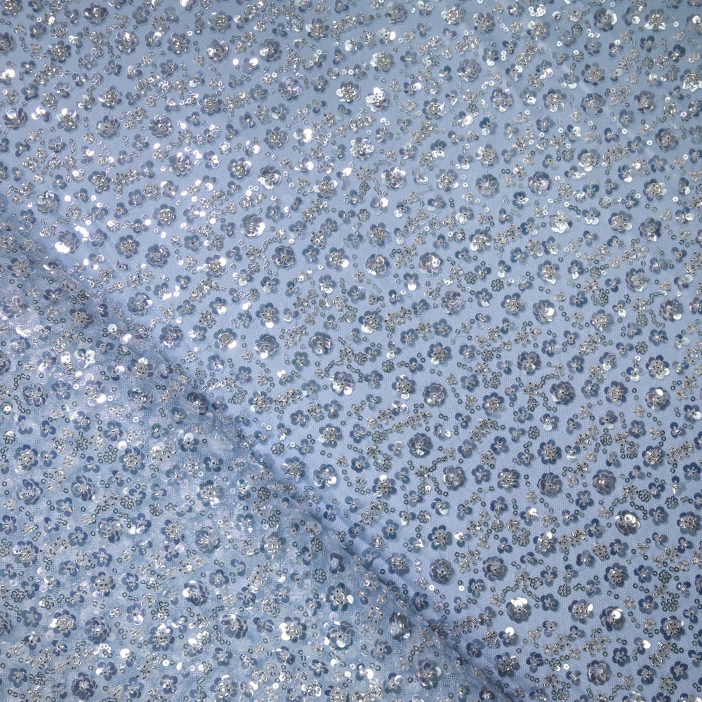 Light Blue Imported Net Fabric with Sequins Embroidery