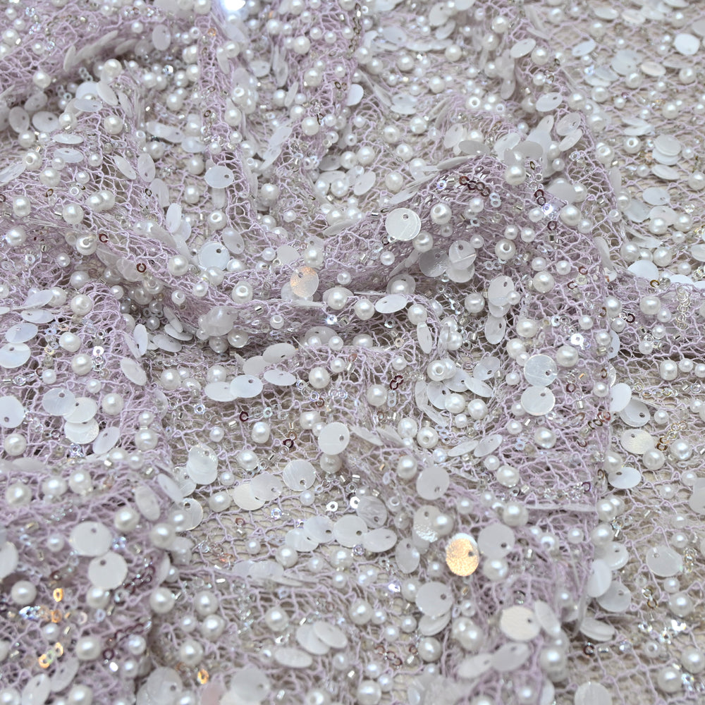 Purple Color Luxury Imported Heavy Pearl & Sequins Embroidered Net Designer Fabric ED1596-3