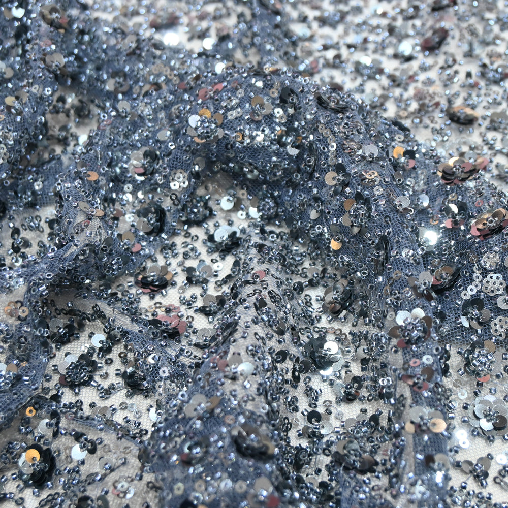 Starry Grey Dubai Imported Net Fabric with Sequins Embroidery