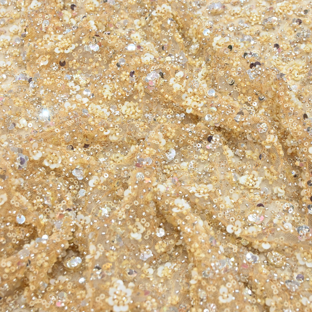 Champagne Gold Dubai Imported Net Fabric with Sequins Embroidery