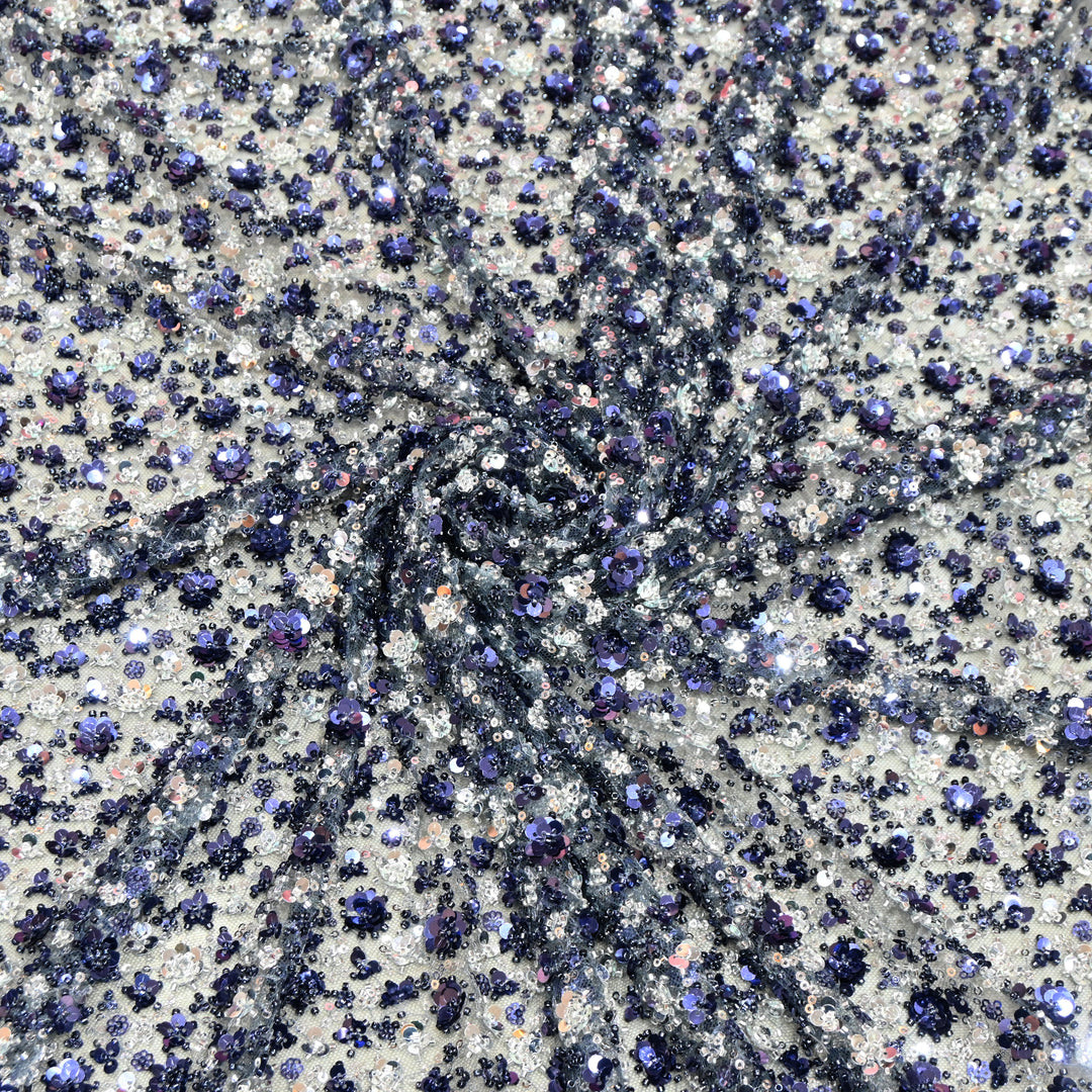 Midnight Blue Dubai Imported Net Fabric with Sequins Embroidery