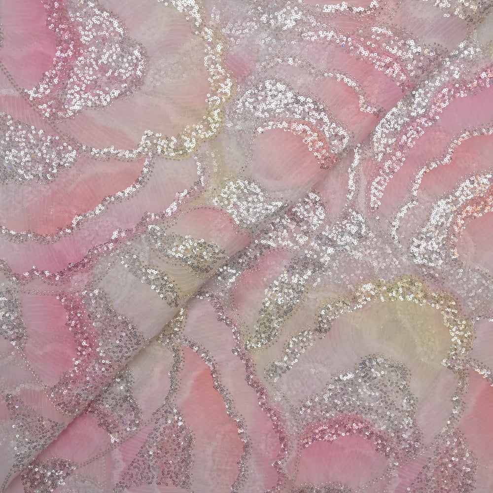 Blush Pink Imported Net Fabric with Sequins Embroidery