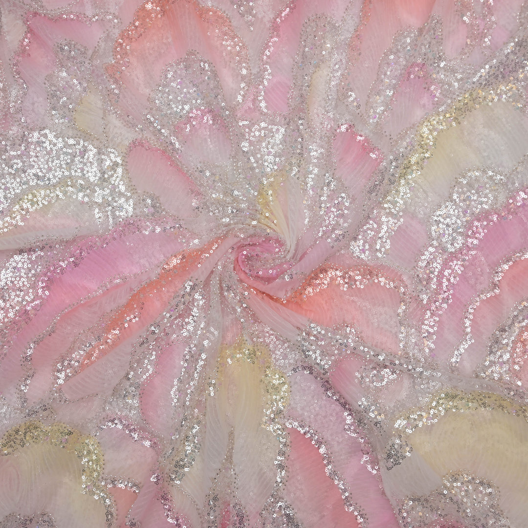 Baby Pink Imported Net Fabric with allover Sequins Embroidery