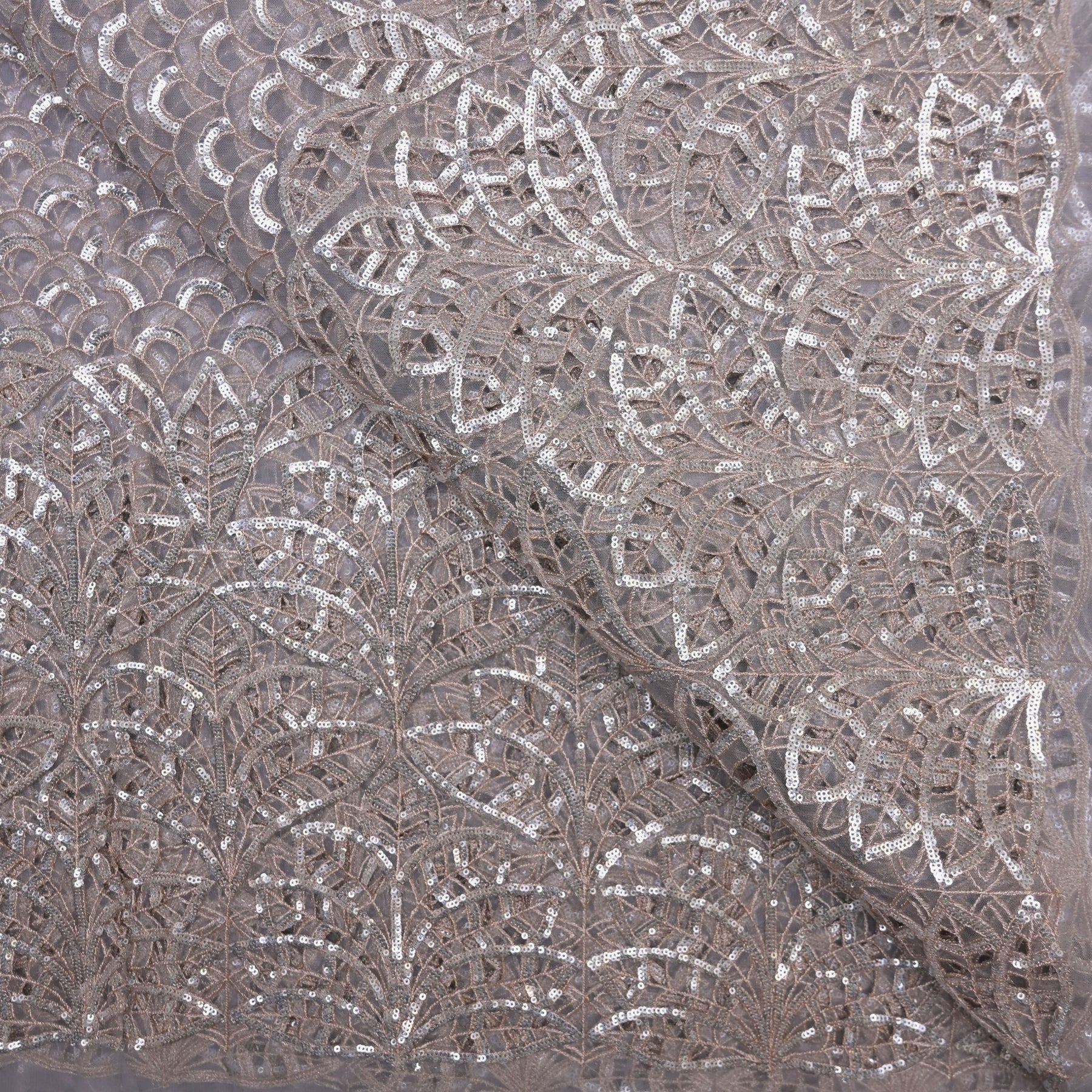 Grey Mermaid Net Fabric with Cutwork & Sequins Embroidery.