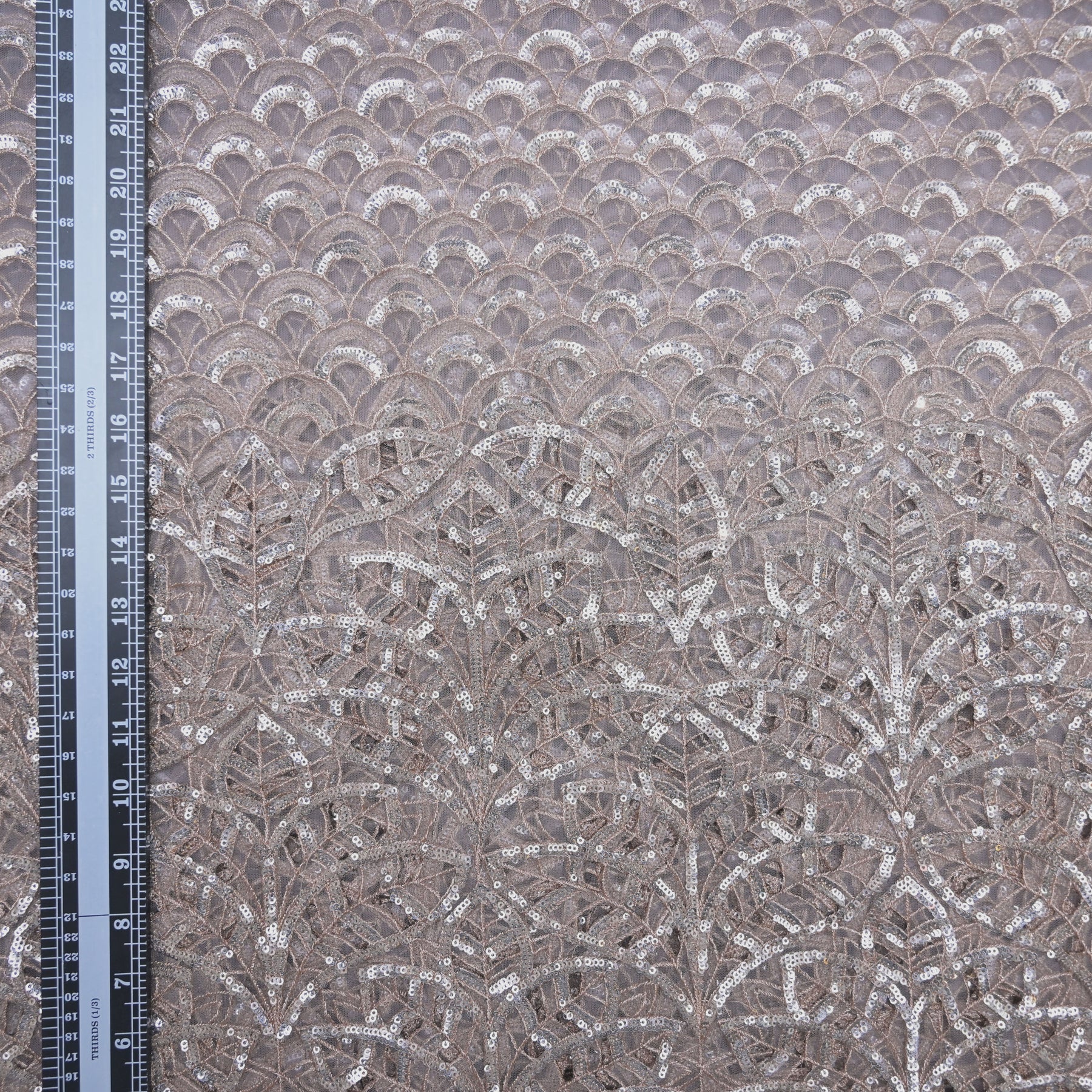 Refine your creations with this Grey Mermaid Net Fabric, exquisitely adorned with intricate cutwork and shimmering sequin embroidery. Crafted on a fine, soft net base, the fabric offers a delicate balance of elegance and glamour, making it perfect for statement outfits.