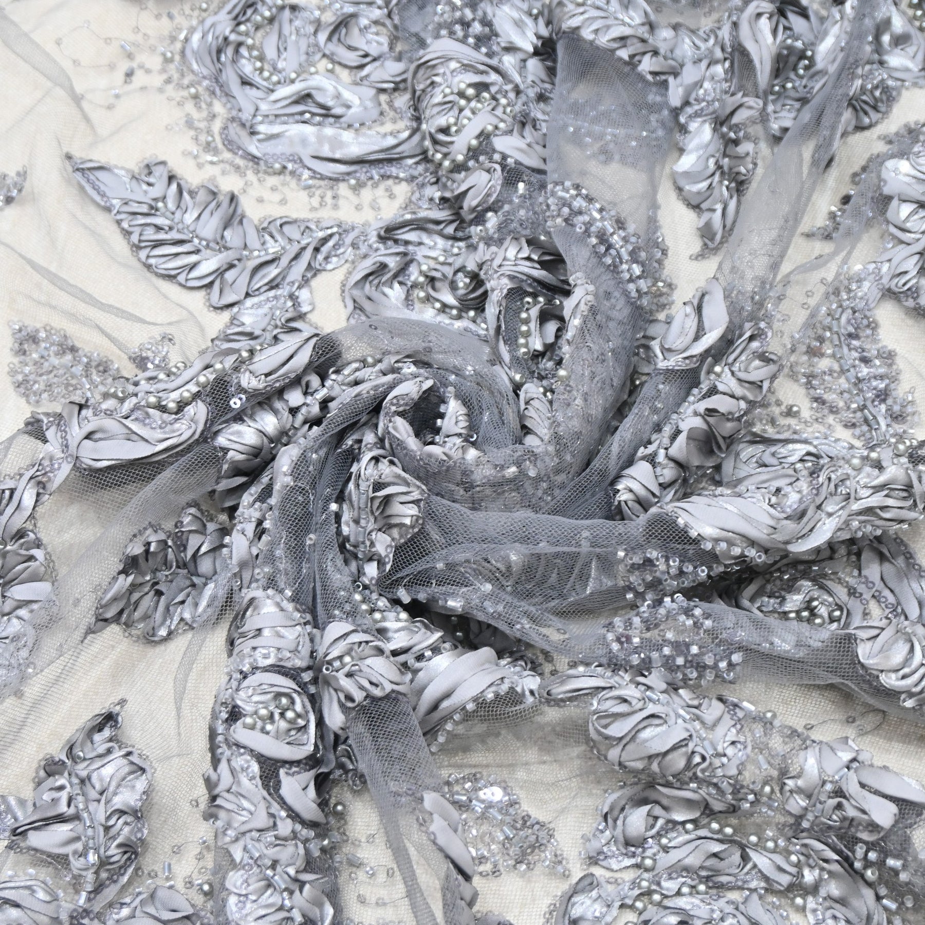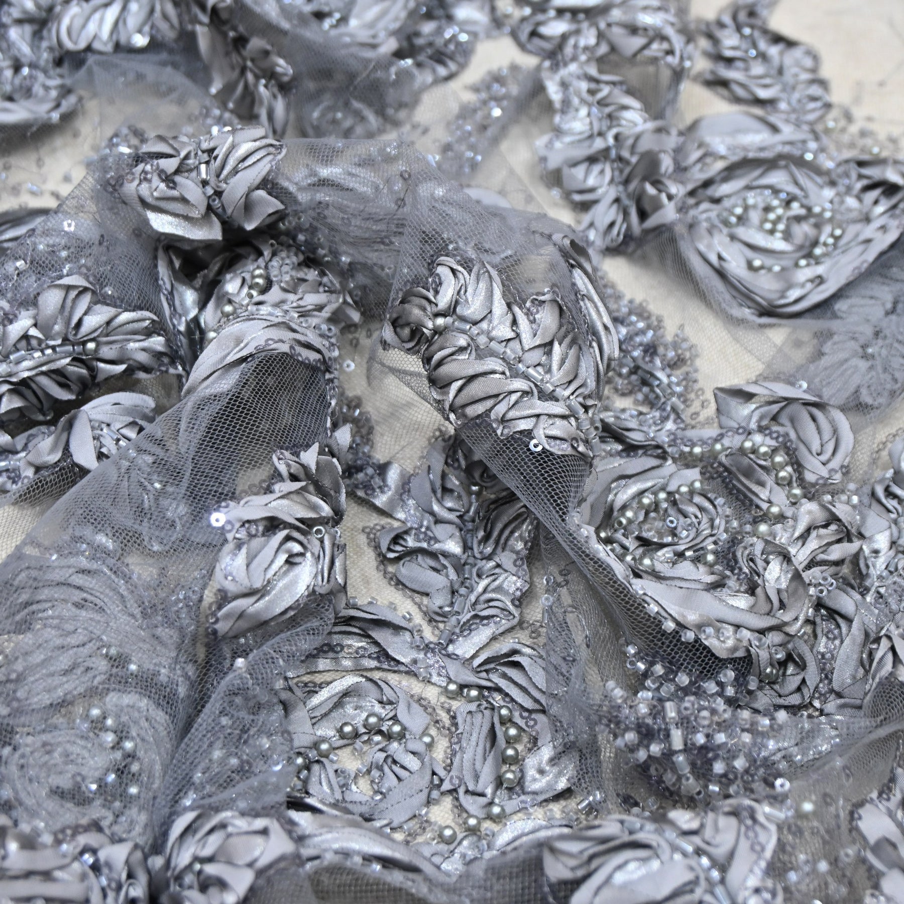 Imported Net Fabric with 3D Floral & Cut Dana Sequins Embroidery β Premium Party Wear Fabric-DY03174-3