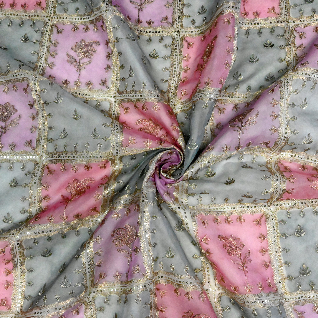 Silk Chanderi Thread Sequence Embroidery Fabric